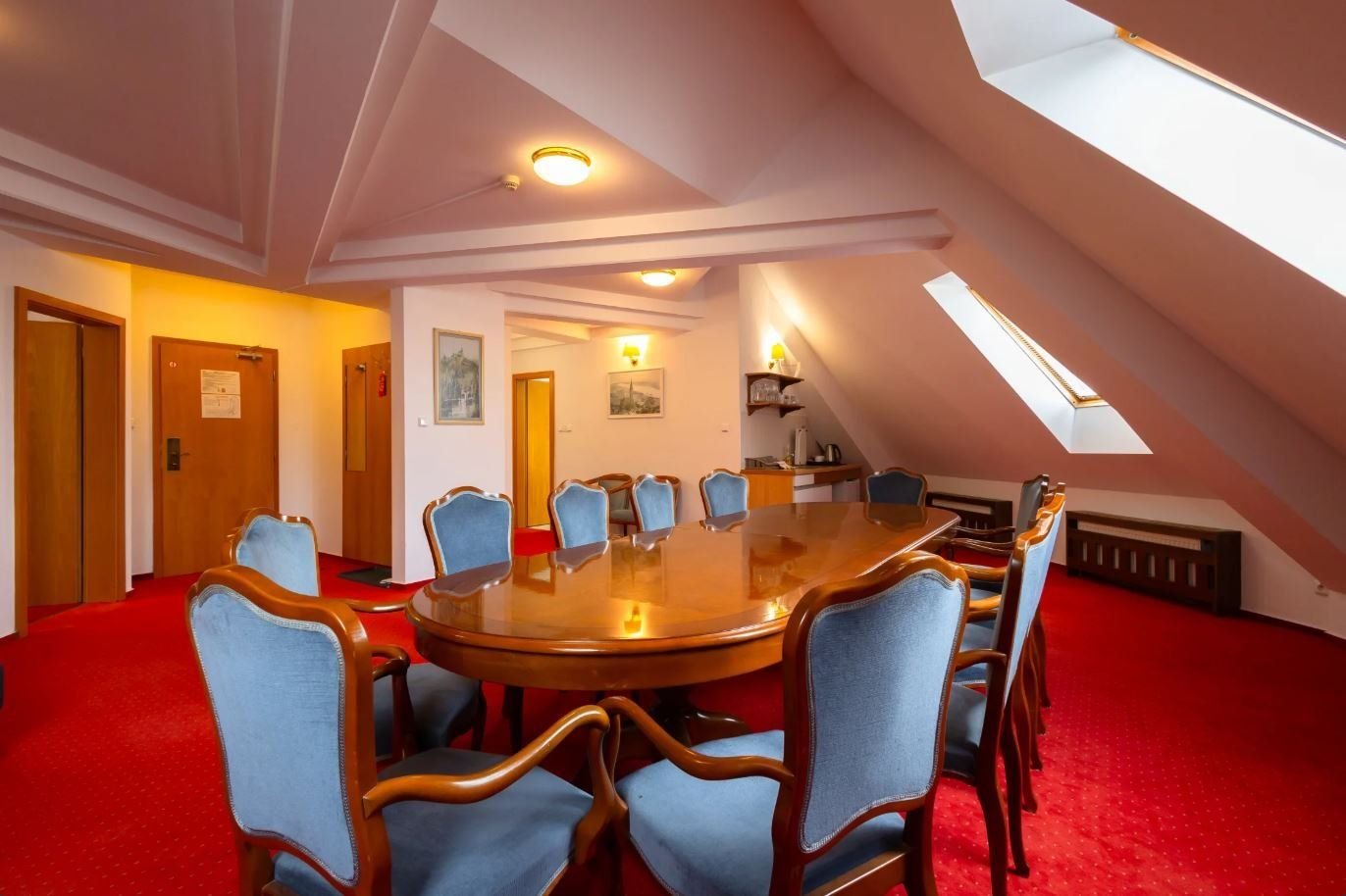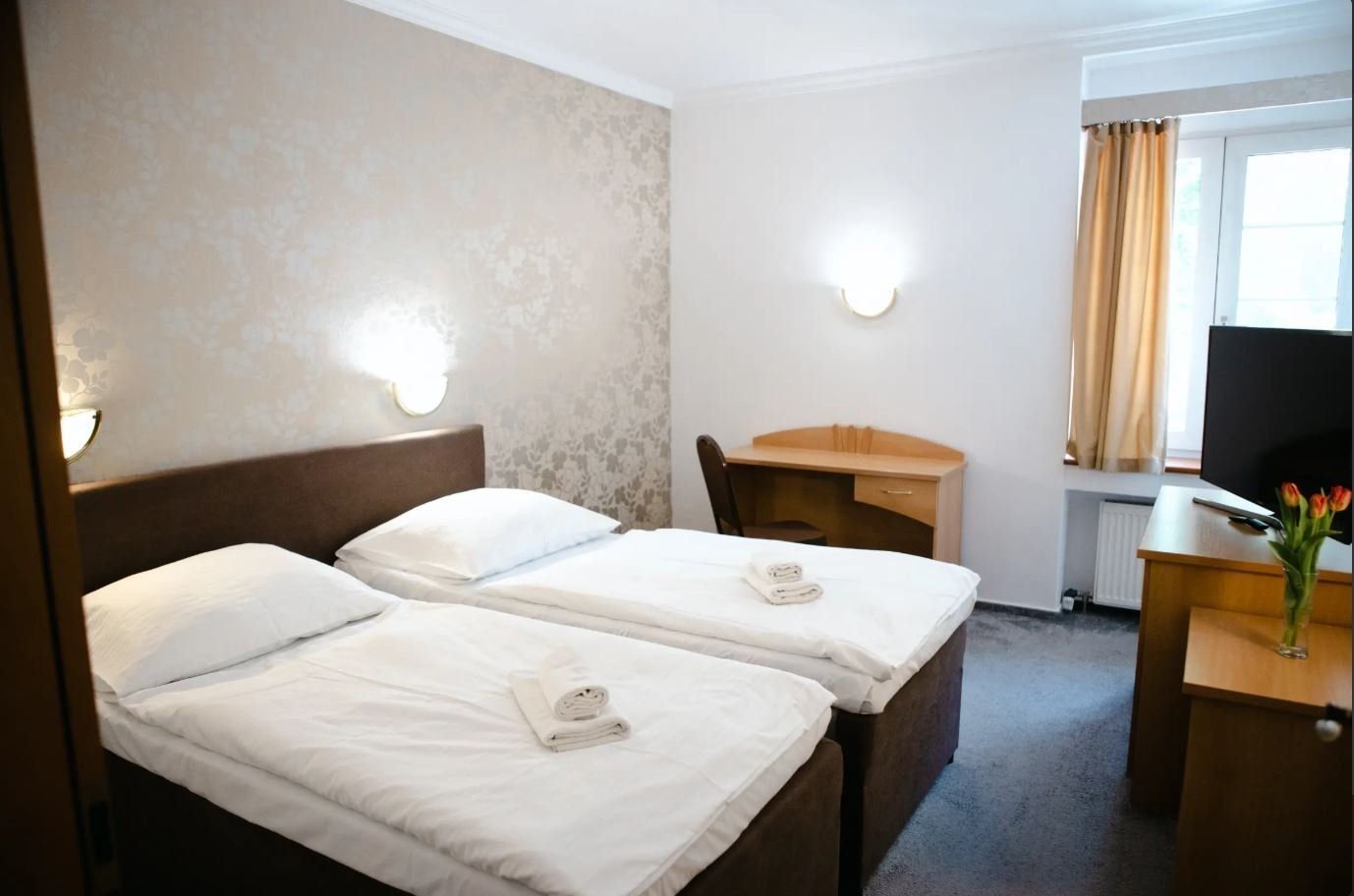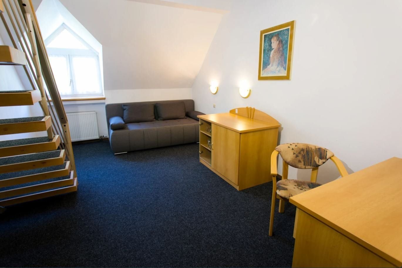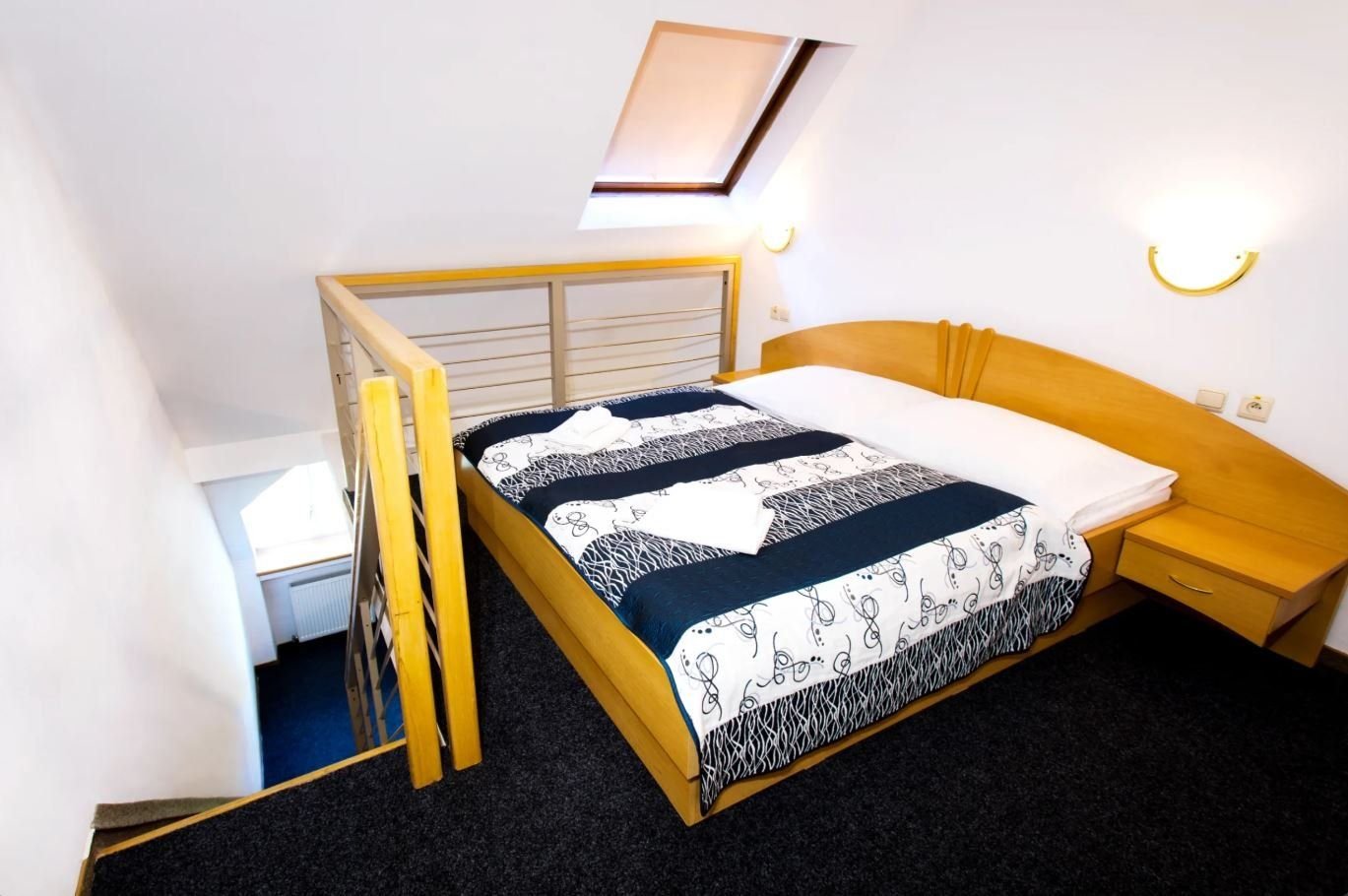 Hotel nabízí ubytování v moderně zařízených pokojích.Dvoulůžkový pokoj Classic - dvoulůžkový pokoj s manželskou postelí nebo oddělenými lůžky, samostatnou koupelnou s toaletou, chladnička s minibarem, TV a internetové připojení.Dvoulůžkový pokoj Mezonet Superior - dvoulůžkový pokoj s manželskou postelí na poschodí, samostatnou koupelnou s toaletou, chladnička s minibarem, TV a internetové připojení.Rodinný pokoj s možností 2 přistýlek - je vybavený samostatnou koupelnou s toaletou, chladnička s minibarem, TV a internetové připojení.Rodinný Apartmán - oddělená ložnice s manželskou postelí, obývací místnost s přistýlkou v podobě rozkládací pohovky, výhled na zámek, samostatná koupelna s toaletou, chladnička s minibarem, TV a internetové připojení.