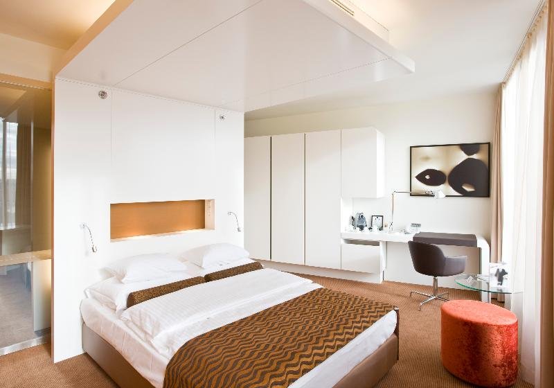 Nadčasové ubytování, komfortně vybavené pokoje.Dvoulůžkový pokoj Deluxe - manželská postel, koupelna s vanou nebo sprchou a toaletou, minibar, minerákní voda na pokoji, klimatizace, vysoušeč vlasů, telefon, digitální IP TV, trezor