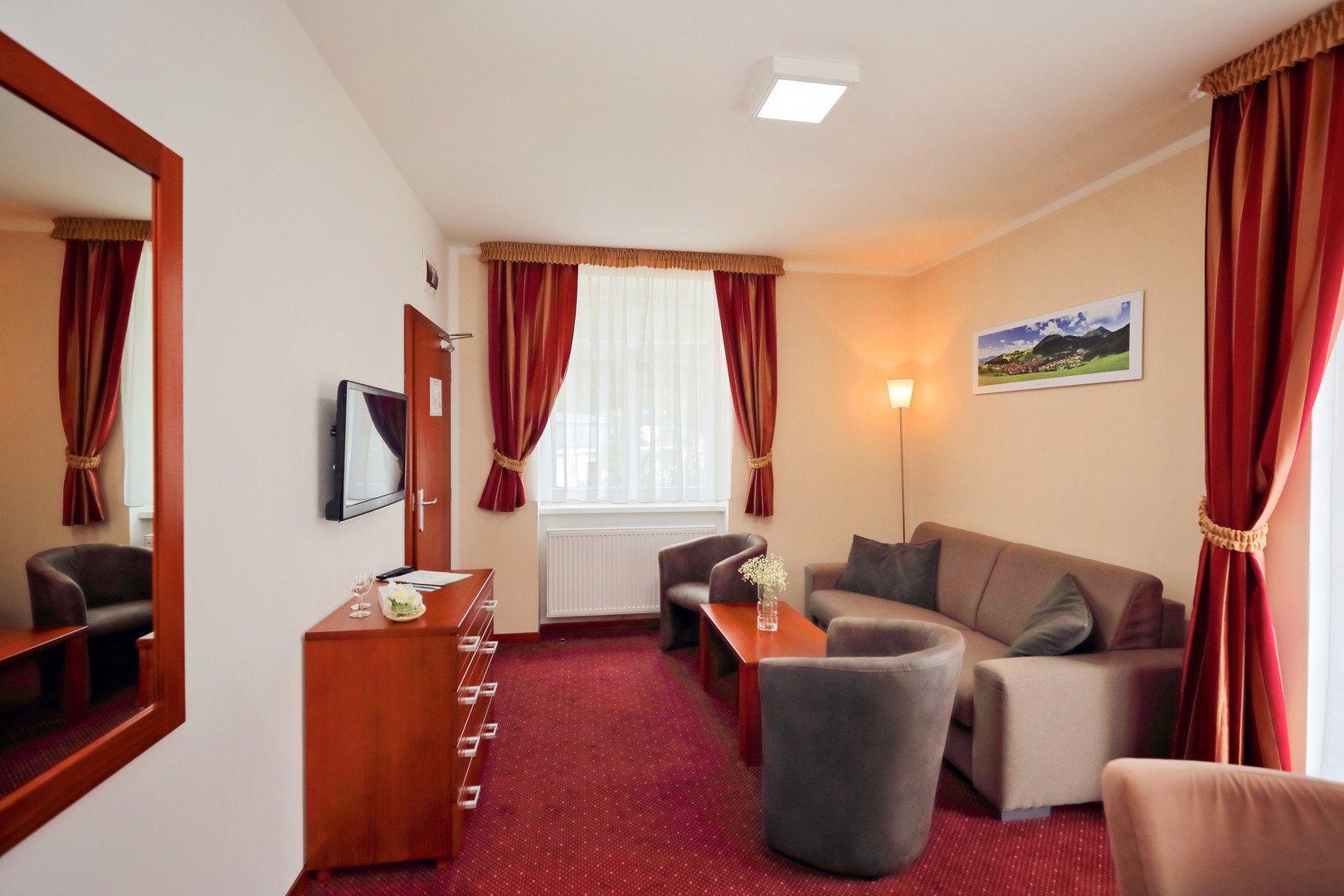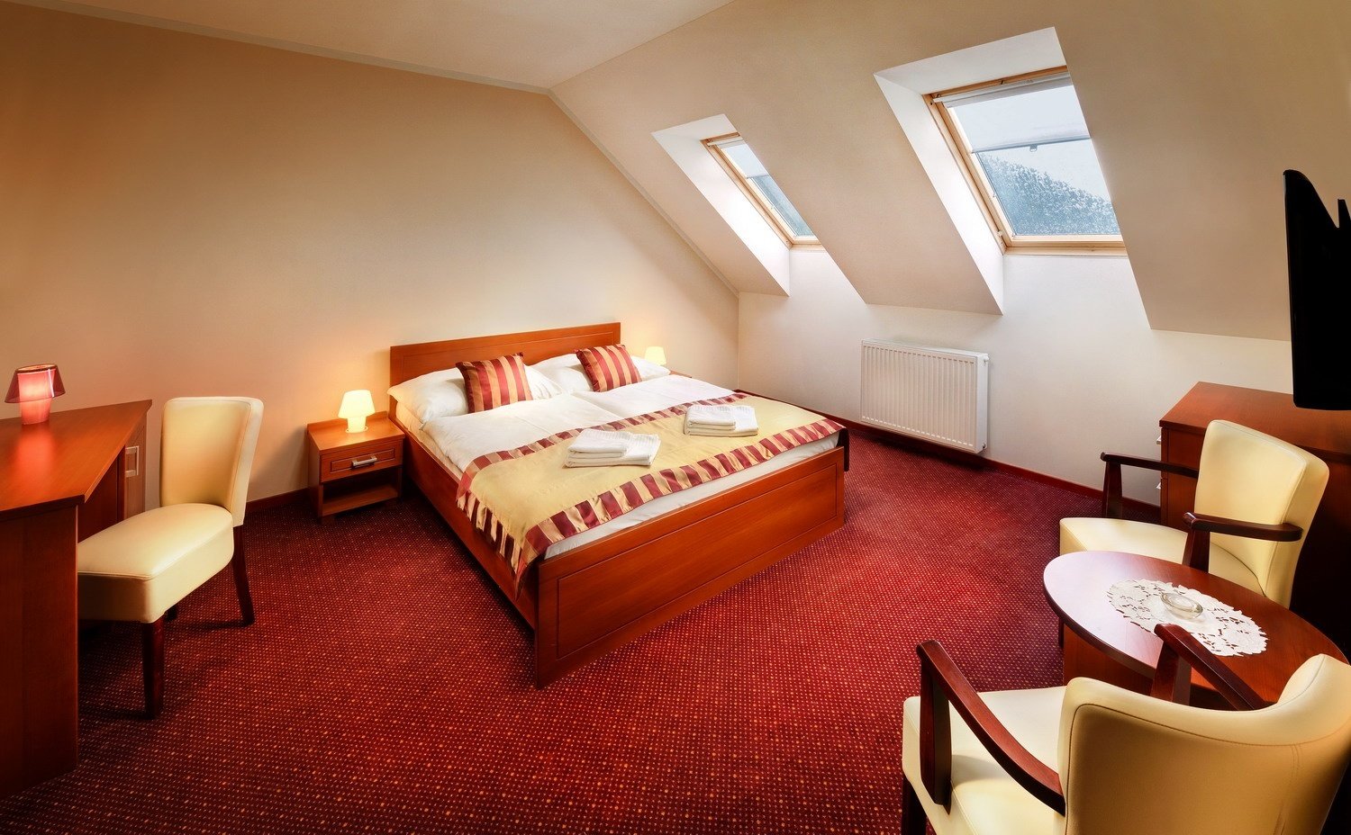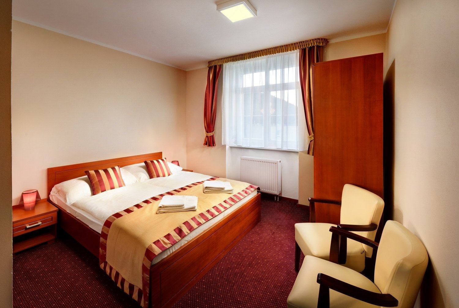 Typy pokojů :* dvoulůžkové pokoje s možností přistýlky: sprcha, WC, TV, radiobudíkem, chladničkou, telefonem a připojením na internet.* apartmány a rodinné pokoje na vyžádání