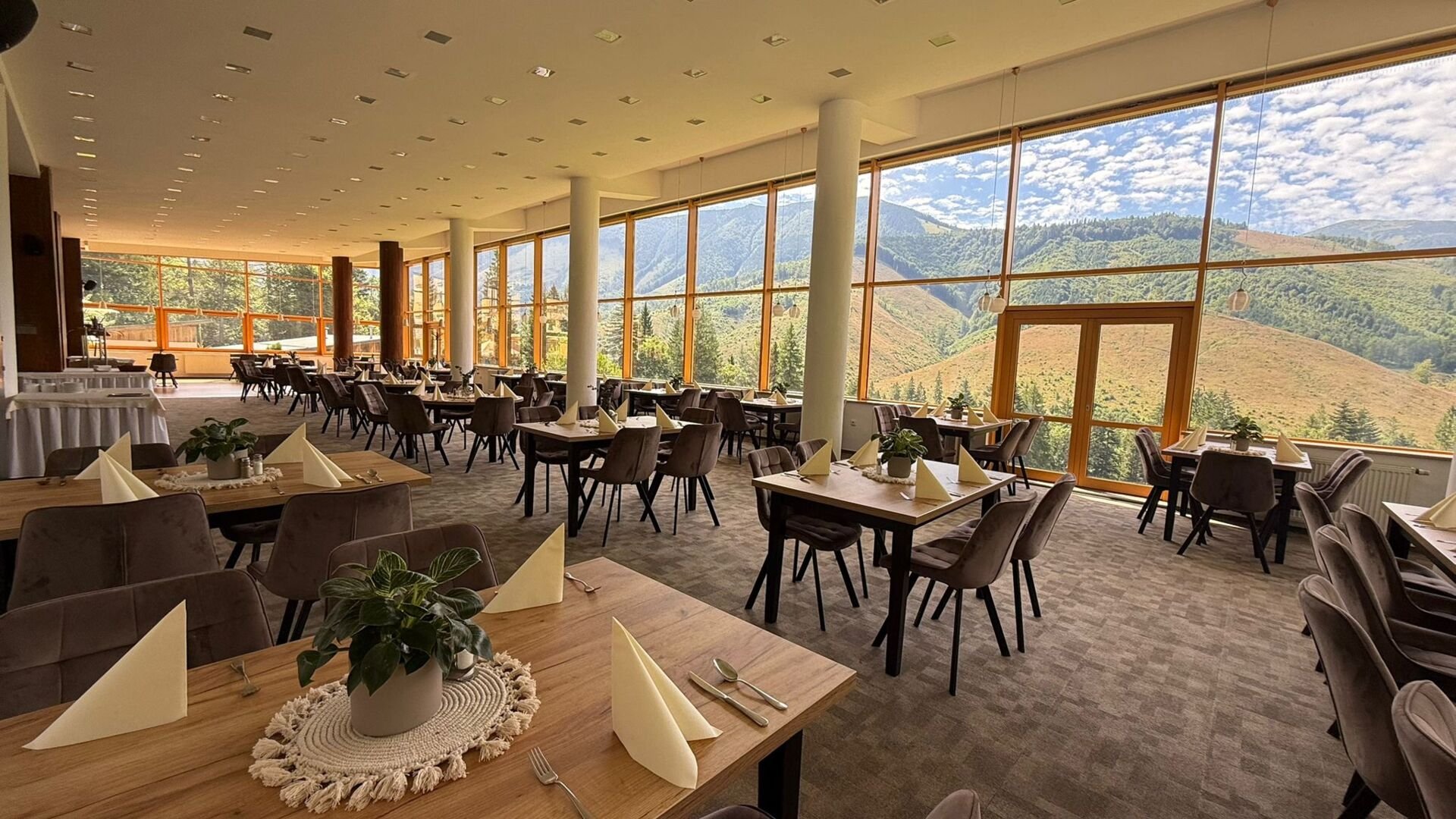 Snídaně se podávají v hotelové restauraci v době od 7:30 do 9:30 hod.Obědy se podávají v hotelové restauraci a v letní sezóně na terase hotelu od 11:30 do 13:30 hod. Kavárna je otevřena denně do 21:30 hod.V zimním období jsou večeře podávány obvykle formou bufetu. Každý večer jiná polévka na zahřátí. Bohatý výběr masových jídel, ryby, bezmasá jídla, pestré přílohy, saláty, ovoce a pro radost dezerty a sladkosti.Možnost obědového balíčku.V letním období jsou večeře podávány buď formou servírovaného menu nebo formou bufetu. aždý večer jiná lahodná polévka na zahřátí. Bohatý výběr masových jídel, ryby, bezmasá jídla, pestré přílohy, saláty, ovoce a dezerty a sladkosti.Večeře se podávají v hotelové restauraci a v letní sezóně na terase hotelu od 17:30 do 20:30 hod.