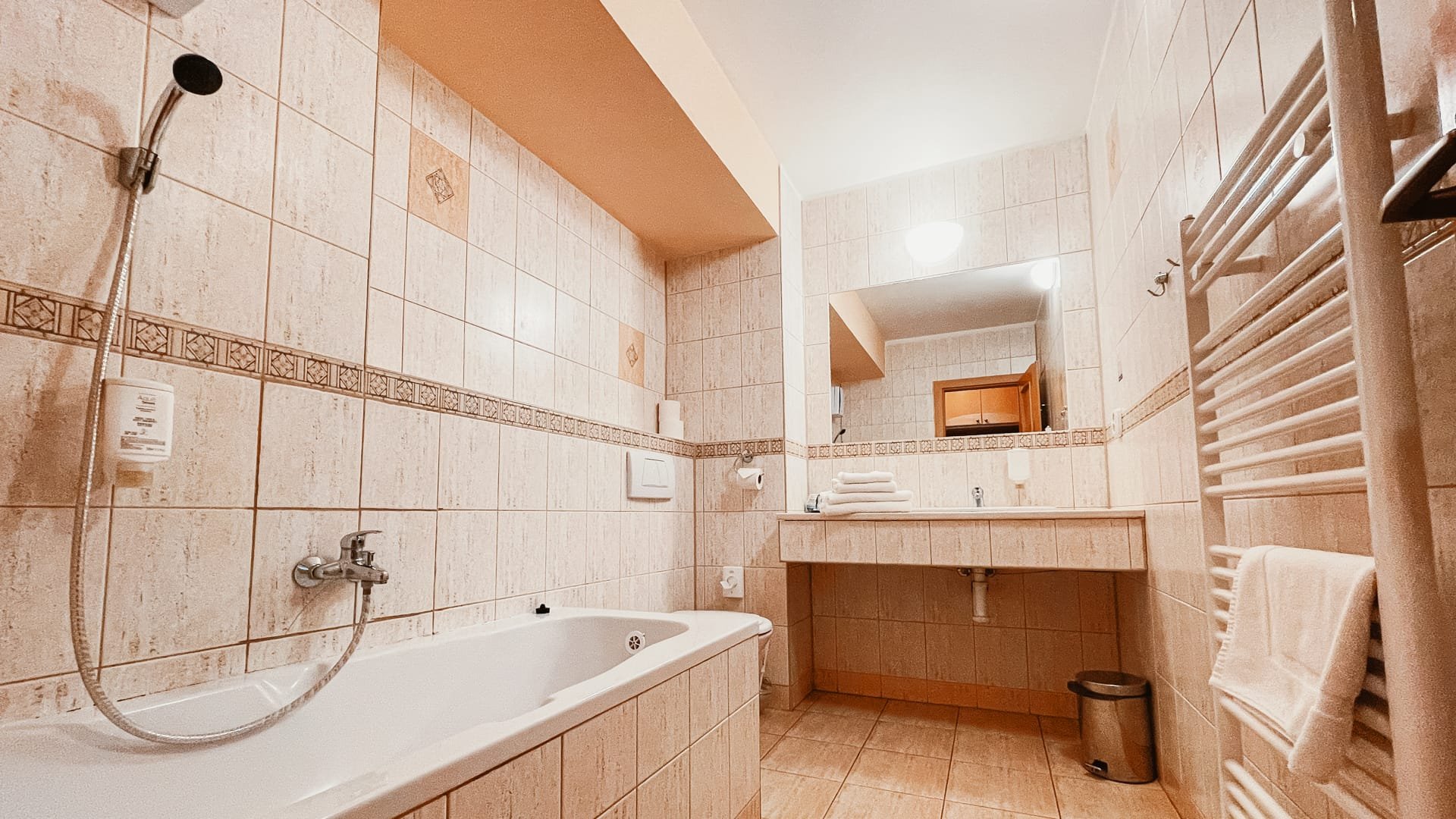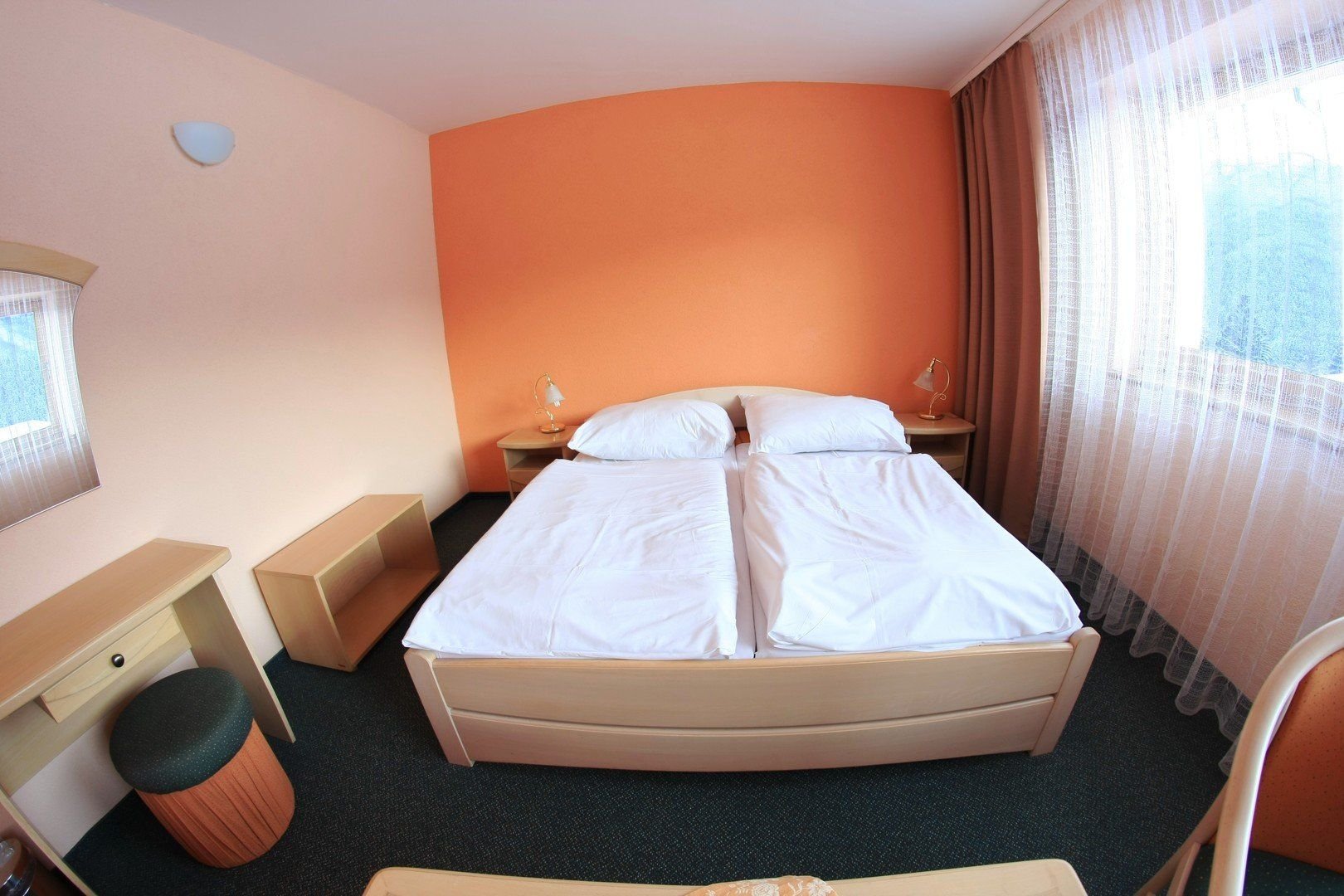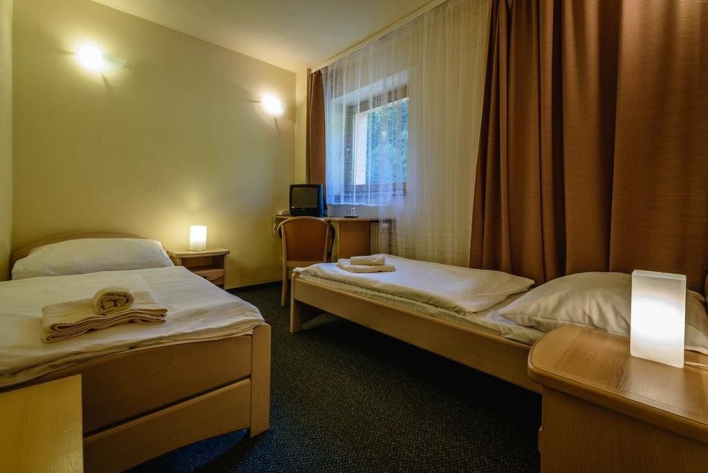 Typy pokojů:* dvojlůžkový pokoj Standard* dvoulůžkový pokoj Komfort s možností přistýlky * rodinný pokoj Standard* rodinný pokoj Komfort ( 2 propojené pokoje - 4 lůžka )* apartmán pro 3 osoby Vybavení:* Dvoulůžkový pokoj Standard: TV + SAT, telefon, koupelna se sprchovým koutem, Wi-Fi*Dvoulůžkový pokoj Komfort s přistýlkou: manželská postel, pohovka (plnohodnotná postel), TV + SAT, lednička, telefon, koupelna s vanou, balkón, Wi-Fi* Rodinný pokoj Standard : 2 samostatné pokoje, v pokoji s oddělenými lůžky je balkon, 1x manželská postel, 2 oddělená lůžka, TV + SAT, telefon, koupelna se sprchovým koutem, Wi-Fi* Rodinný pokoj Komfort : 2 pokoje propojené s 2 balkony, 2x manželská postel, 2x pohovka (plnohodnotná postel), TV + SAT, telefon, koupelna s vanou, Wi-Fi* Apartmán: manželská postel, obývací pokoj s rozkládacím gaučem, TV + SAT, telefon, 2x koupelna (jeden pokoj s vanou a druhý se sprchovým koutem), Wi-Fi