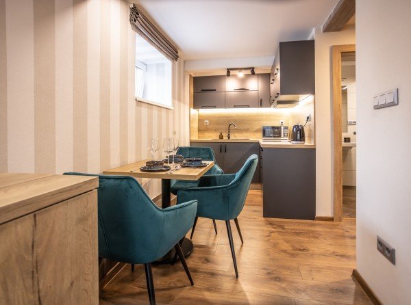 Apartmány nabízí ubytování v 8 apartmánech o rozloze od 31m2 - 181m2. Všechny apartmány jsou stylově a moderně zařízené. Každý apartmán má vybavený kuchyňský kout základním nádobím. Studiový apartmán ( nachází se v prvním patře )- manželská postel s možností 2 přistýlek, koupelna s toaletou, kuchyňský koutApartmán Deluxe- manželská postel s možností 2 přistýlek, koupelna s toaletou, kuchyňský koutApartmán Deluxe s balkonem nebo francouzským oknemPrázdninový byt ( ve třetím poschodí )- užitná plocha 181m2 a velká terasa- apartmán se 4 pokoji pro max. 8 osobVšechny kapacity na vyžádání.