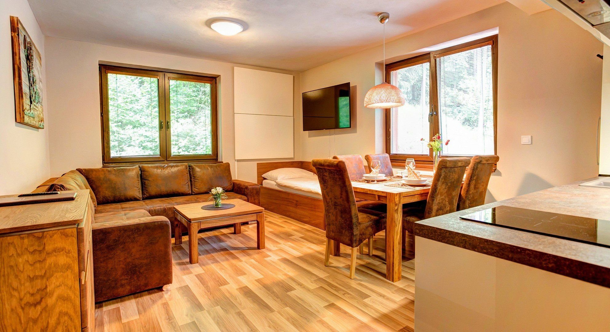Apartmány se nachází v Demänovské dolině jen 5 km od lyžařského střediska Jasná a 11km od největšího aquaparku na Slovensku, Tatralandia.