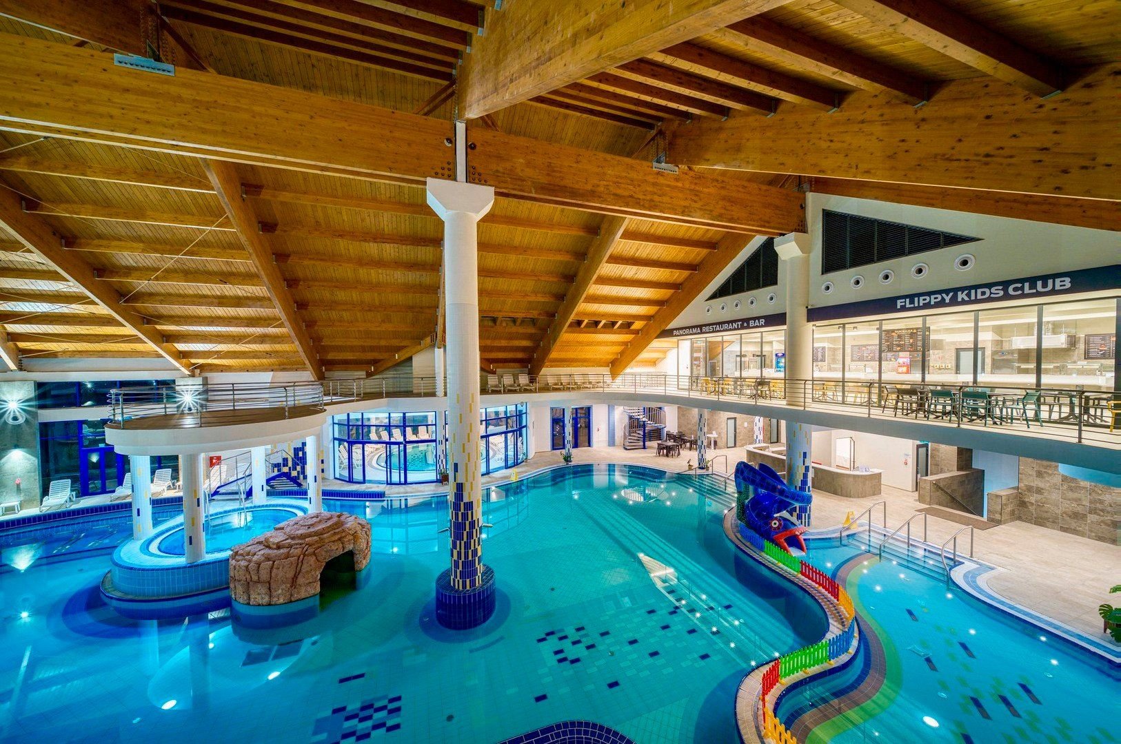 Thermal park nabízí zábavu ve 4 vnitřních a 10 letních venkovních bazénech. Wellness cetrum s 5 saunami, vířivkou a odpočinkovou místností, relaxační masáže, thajské masáže a kosmetické služby. Vnitřní bazény s teplotou 27°C jsou naplnění vsltním termálním pramen Hevíz, Velký relaxační bazén s teplotou vody 30°C a oddychový bazén s tepltou 36°C. Venkovní bazény jsou otevřené denně během července a srpna. Tenisové vybavení, minigolf, bowling, pronájem kol, šipky, stolní tenis, kulečník, tenisový kurt. Léčivá voda z patinských pramenů má dlouhotelou tradici.Termální voda se vyznačuje vysokým obsahem hydrouhličitanů, vápníku, hočíku a síranů a díky tomu blahodárně působí na pohybové ústrojí a je skvělým lékem proto jeho chorobám. Speciální relaxační koupel - posezení okolo pramene, které se nachází přímo v termálním jezírku.