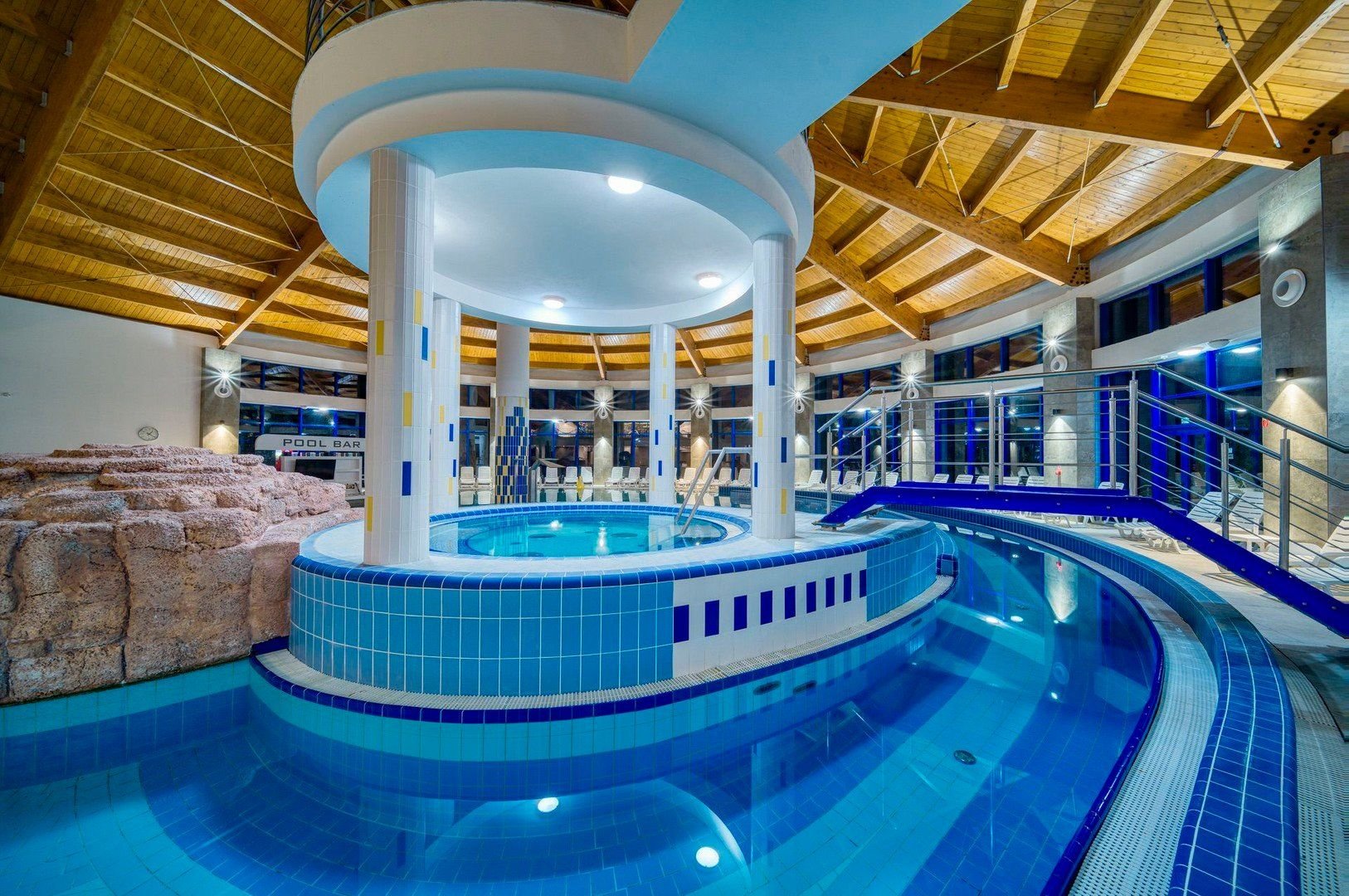 Moderní vstupní hala s recepcí, lobby bar, terasa, gril, dětské hřiště, dětský koutek, restaurace, Wifi, denní bar, hotelové parkoviště, wellness, vnitří i venkovní bazeny, fitness centrum