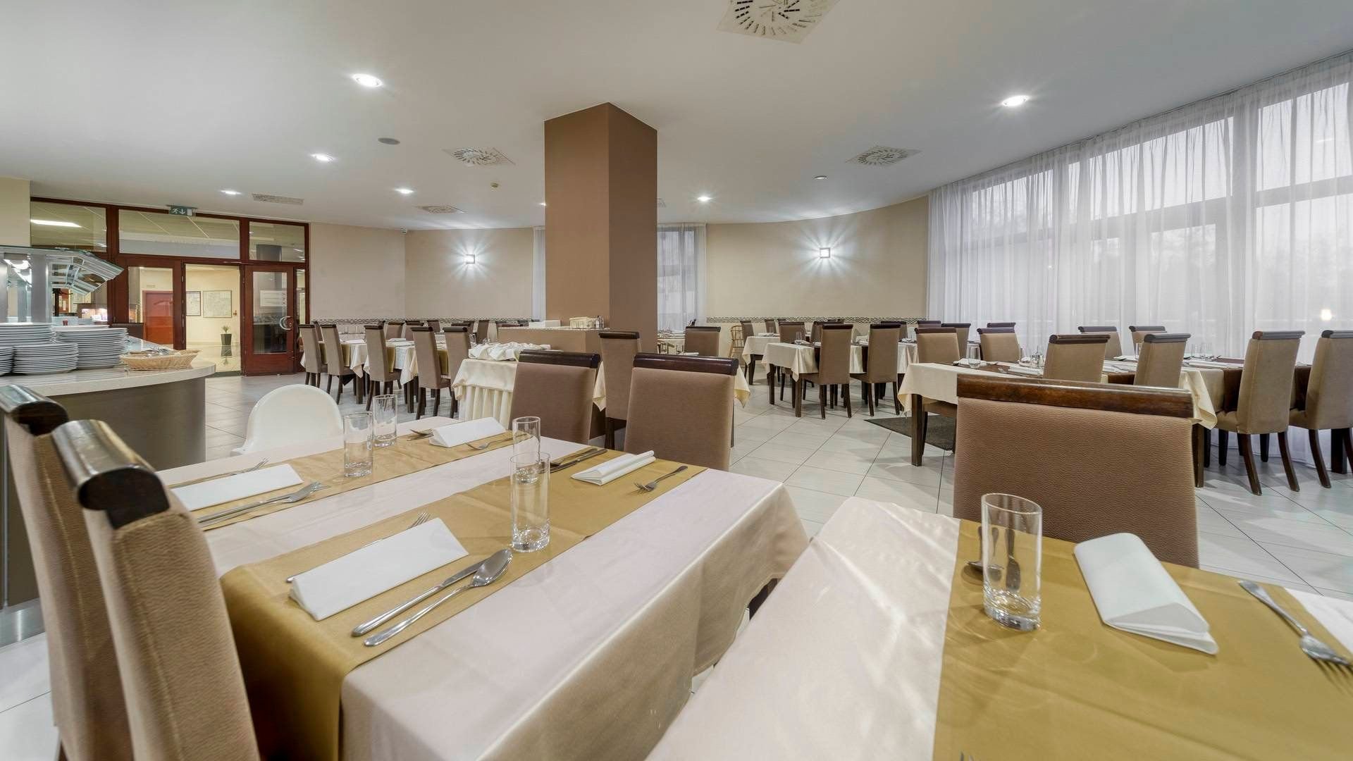 Snídaně a večeře se podávají v hotelové restauraci formou bufetových stolů/výběr z menu. Dietní, bezlepková, vegetariánská jídla možná.Novinka - Panorama Restaurant & bar, která se nachází v Thermal parku.