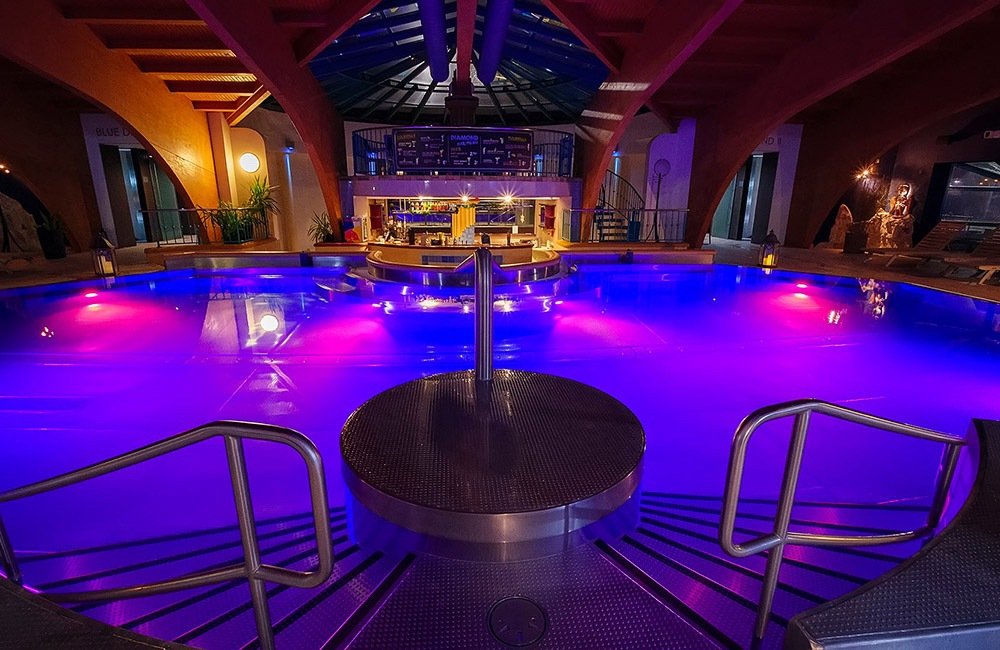 Volný vstup do Aquaparku: venkovní bazén, skluzavky, vnitřní relax Blue Saphire bazén s laser show, vnitřní Thermal Blue Diamond bazén s barem, vnitřní dětský bazén. Volný vstup Wellness a Spa: Fire and Water 8 saun, inhalce, whirpool, jacuzzi. Relaxační místnost s krbem.