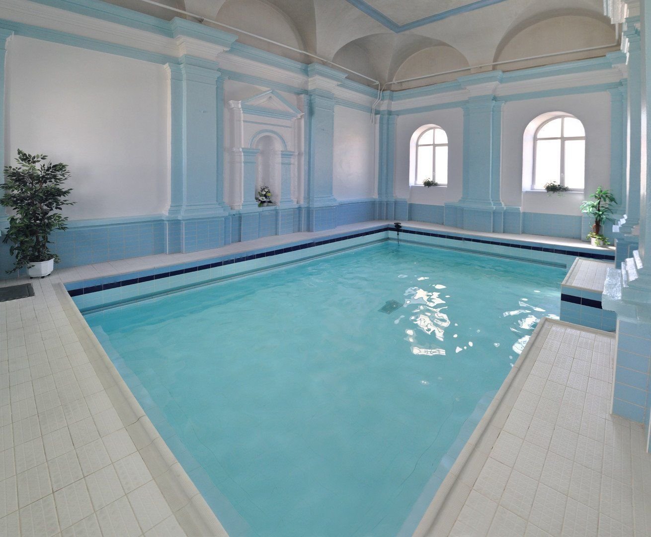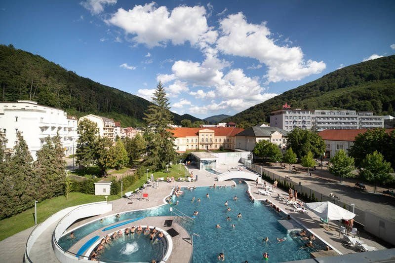 Venkovní bazén Grand- bazén je dostupný suchou nohou pro hosty ubytované v hotelu Krym a Slovakia. Pro ostatní je k dispozici vstup přes budovu Rehabilitační bazén.* celonerezový víceúčelový bazén se třemi plaveckými drahami* oddychová zona - kruhový relaxační bazén* rychlá řeka, vířivky, hydromasážní trysky, chrliče vody* v sezoně k dispozici lehátkaHlavní bazén* rozměry 25x10m* hloubka 1,25m* teplota vody 28-31°CRelaxační bazén* rozměry kruh 8m* hloubka 1m* teplota 32-35°CMALÝ WELLNESS OKRUH ( 1 vstup 80min )- vnitřní bazén- vířivka- relaxační místnost Minerál- tepidárium s vyhřívanými lehátky a stěnou z himalájské soliVELKÝ WELLNESS OKRUH ( 1 vstup 120 nebo 180min )- všechny atrakce malého okruhu- parní sauny - solná, bylinková, turecká- suché sauny - finská, švédská, infrasauna- ochalzovací bazén, ochlazovací vědro, ledopád- vířivka Hvězdné nebe- zážitkové sprchy- oddychové zony - Hvězdné nebe nebo Les- Kneippův chodník