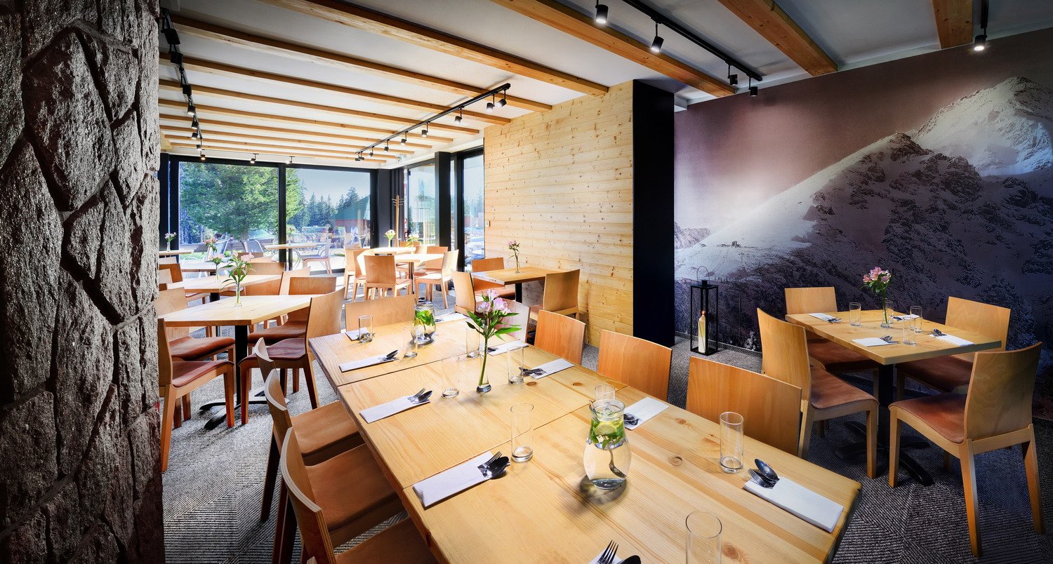Snídaně formou bufetu. Možnost dokoupení polopenze, v rámci které připravuje šéfkuchař každý týden slovenské speciality.