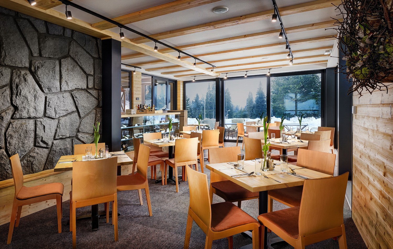 Recepce s hotelovým trezorem, hala, WiFi v hale, lyžárna, úschovna kol, výtah, jídelna, restaurace, kavárna, terasa, zahrada, sluneční terasa s lehátky.Nekuřácký objekt.
