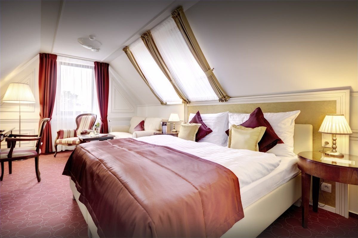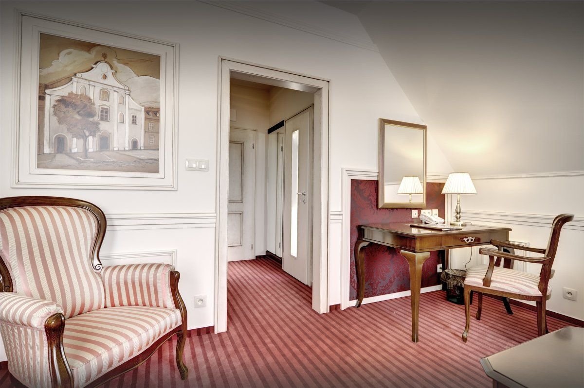 Hotel se nachází ve 4 historických budovách ze 17. století, které jsou navzájem propojené. Poskytuje ubytování ve zrekonstuovaných a stylově vybavených pokojích.Dvoulůžkový pokoj - manželská postel nebo oddělená lůžka, TV SAT, minibar, koupelna se sprchovým koutem a toaletou, fén, Wifi připojení- pokoje jsou menší, ale útulné, nachází se v 1. a 2. poschodí, jsou přístupné výtahem, pokoje na 2 poschodí jsou podkrovní a mají střešní oknaDvoulůžkový pokoj Deluxe s balkonem - manželská postel, TV SAT, Wifi připojení, minibar, koupelna se sprchou a toaletou- pokoje se nachází na 1. a 2. poschodí, některé jsou bez přístupu výtahem ( historická budova ), pokoje na 2. pochodí jsou podkrovní se střešním oknemApartmán - krásně zařízené pokoje, manželská postel, rozkládací pohovka na každodenní spaní jako přistýlka, SAT TV, minibar, Wifi připojení, koupelna se sprchou a toaletou