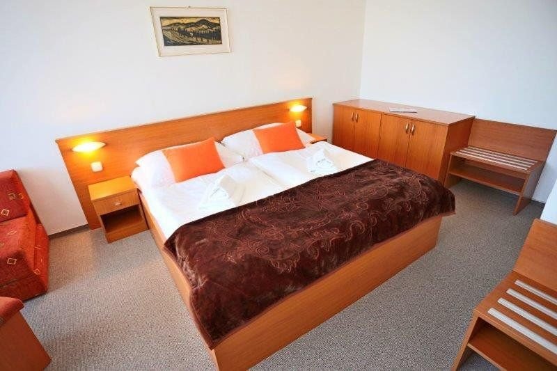 Typy pokojů:* apartmán* rodinné pokoje* jednolůžkový pokoj* dvoulůžkový pokoj s možností přistýlkyVybavení: koupelna, WC, telefon, LCD TV/sat. a balkonem. Hotel má bezbariérový vstup a je vybaven 2 bezbariérovými pokoji.