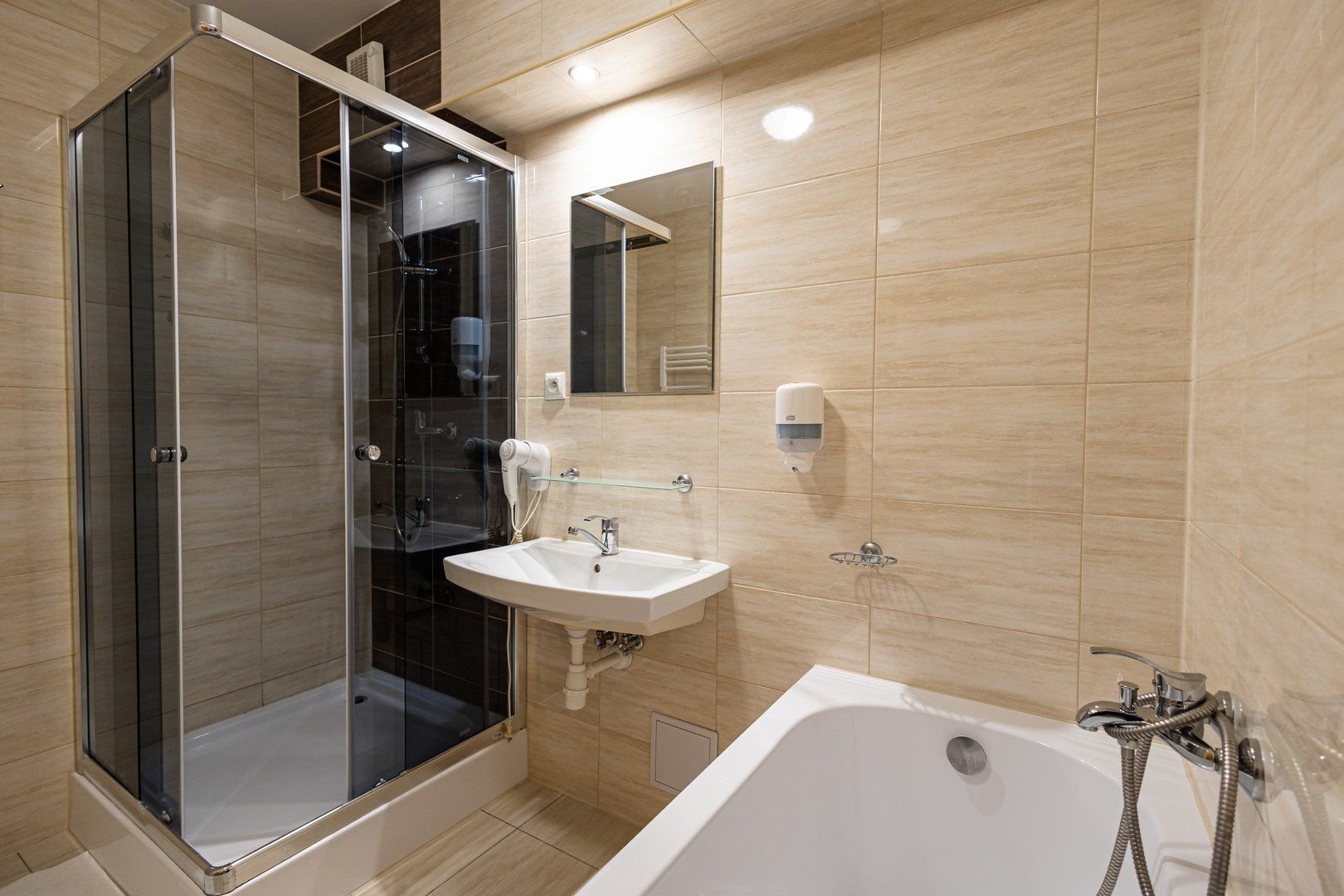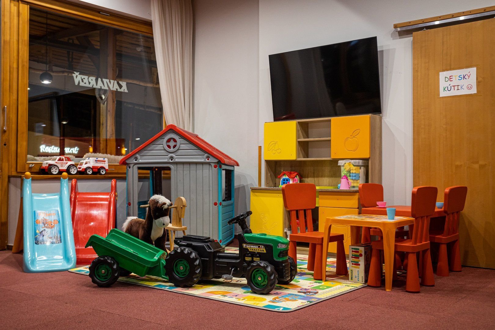 Vstupní hala s recepcí, restaurace, WiFi, kavárna s barem a krbem, terasa, denní bar, salonek, Vitální svet, fitness, kulečník, lyžárna, obchod s potravinami přímo v hotelu. Parkování pro hotelové hosty je zdarma v hotelové garáži.