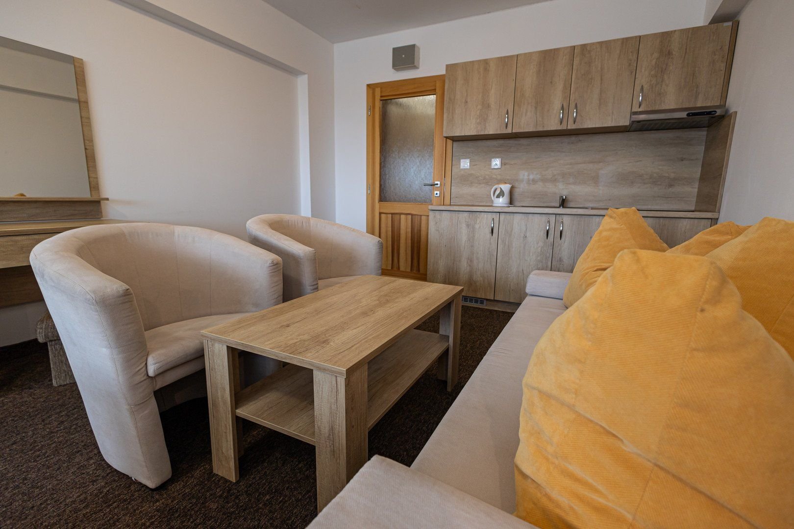 Typy pokojů:* Dvoulůžkové pokoje s možností 1 -2 přistýlek* Studio : vhodné ubytování pro rodiny s dětmi, jedna místnost, 2 pevná lůžka, možnost 2 přistýlek, koupelnou s vanou nebo se sprchou, WC, kuchyňská linka, TV/sat.* Rodinné pokoje a Studia s 2 ložnicemiVybavení : vlastní sociální zařízení, sprchový kout, TV, lednička,fén. Většina pokojů má balkon.Wifi