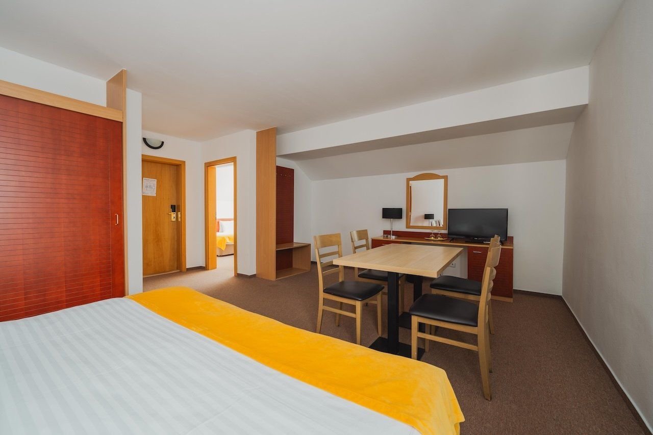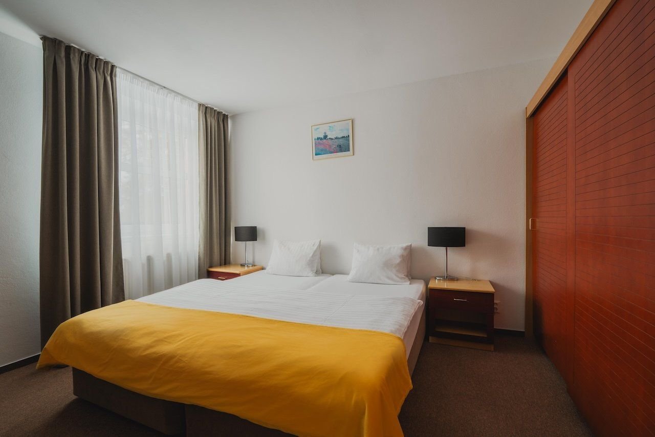 Typy pokojů:* Dvoulůžkový pokoj Standard.* Apartmán StandardVybavení pokojů: koupelna s vanou a WC, TV a wifi.