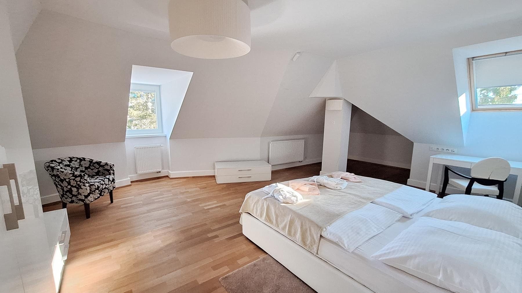 Vila poskytuje ubytování v pěti moderně zařízených apartmánech rozmístěných na třech poschodích, které jsou propojené výtahem. Každý apartmán je navržený s důrazem na detail a pohodlí.Rodinný Apartmán Vila Marína- podkrovní apartmán, ložnice s manželksou postelí, obývací místnost s rozkládacím gaučem, plně vybavená kuchyň, lednička, koupelna s vířivou vanou a toaletou, Wifi a TV technologieApartmán Vila Marína- ložnice s manželksou postelí, obývací místnost s rozkládacím gaučem, plně vybavená kuchyň, lednička, koupelna s vířivou vanou a toaletou, Wifi a TV technologie
