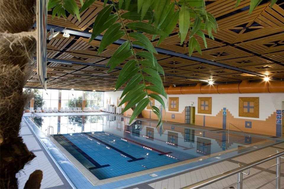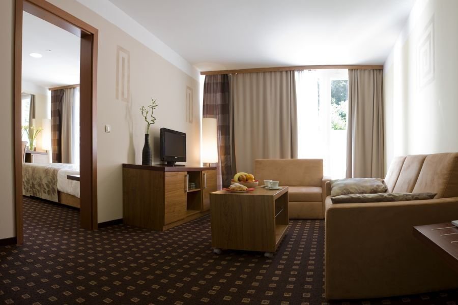 Recepce, restaurace, bar, wellness, svět saun a aqua park.