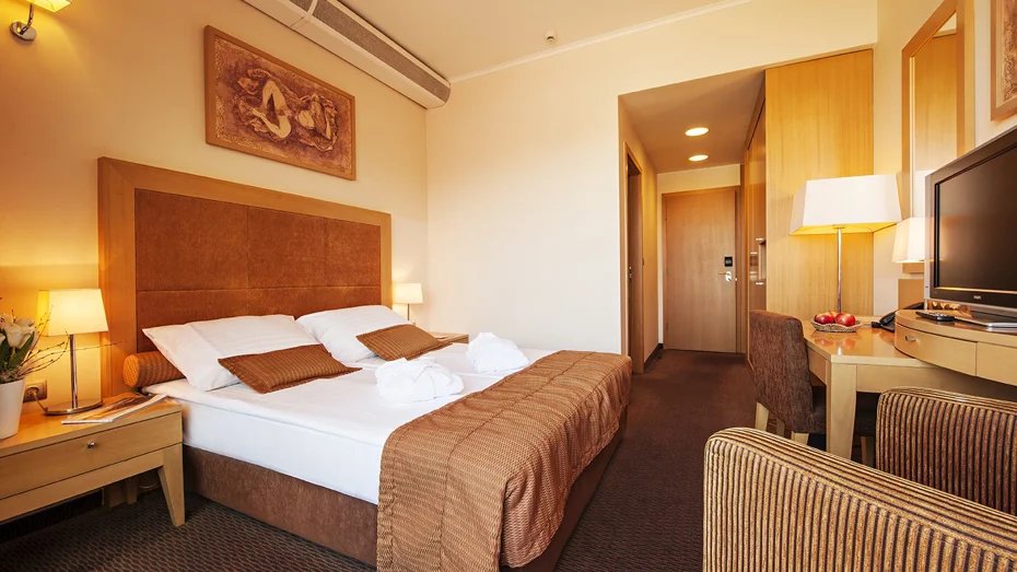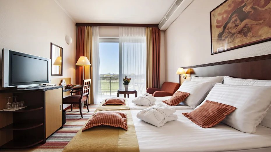 Luxusní hotel leží v bezprostřední blízkosti termálních lázní, cca 1 km od centra města.