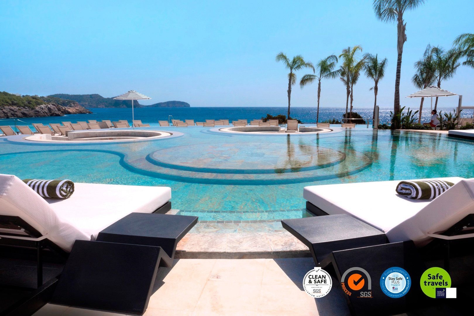Luxusní hotel se nachází přímo na pláži, autobusová zastávka je vzdálena přibližně 200 m, nejbližší restaurace a bary jsou cca 300 m od hotelu, centrum letoviska Es Cana se supermarketem je vzdáleno cca 500 m, letiště 27 km.