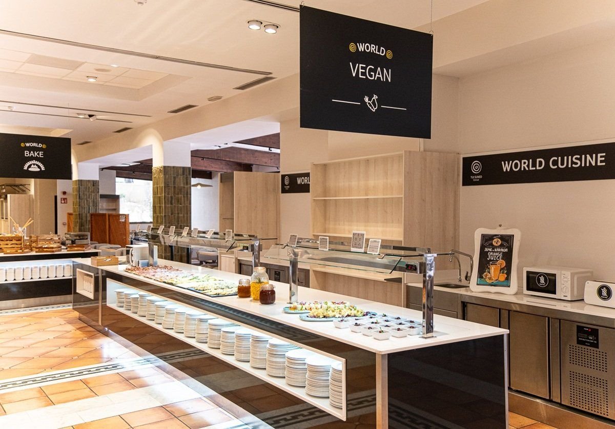 Snídaně (08:00 - 10:00 hod.) formou bufetu. Polopenze: včetně snídaně a večeře. Plná penze zahrnuje snídaně, obědy a večeře. Snídaně, obědy a večeře pouze ve vybraných restauracích. All inclusive: snídaně, obědy a večeře. Snídaně, obědy a večeře pouze ve vybraných restauracích. Rychlé občerstvení v určitých hodinách. Nealkoholické nápoje (10:00 - 23:30 hod.), pivo (10:00 - 23:30 hod.), víno (10:00 - 23:30 hod.), káva a čaj (10:00 - 23:30 hod.) a národní alkoholické nápoje (10:00 - 23:30 hod.).