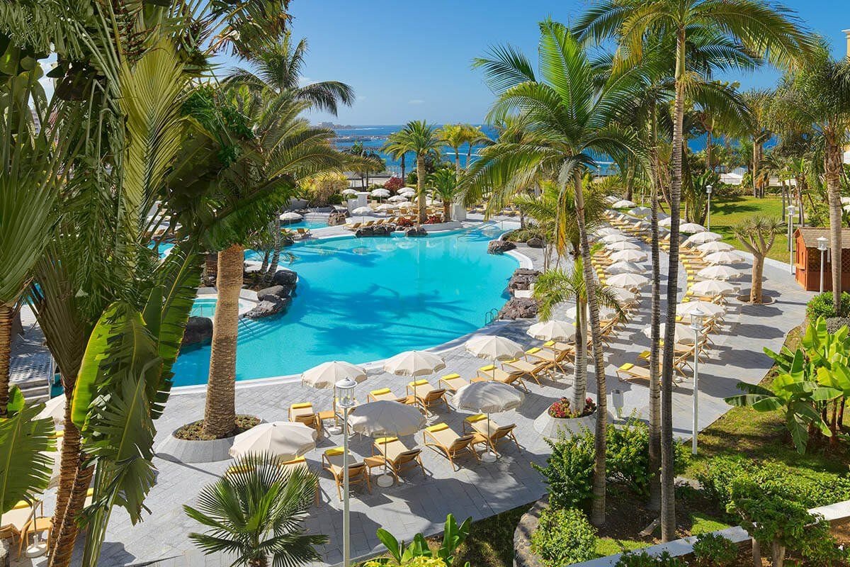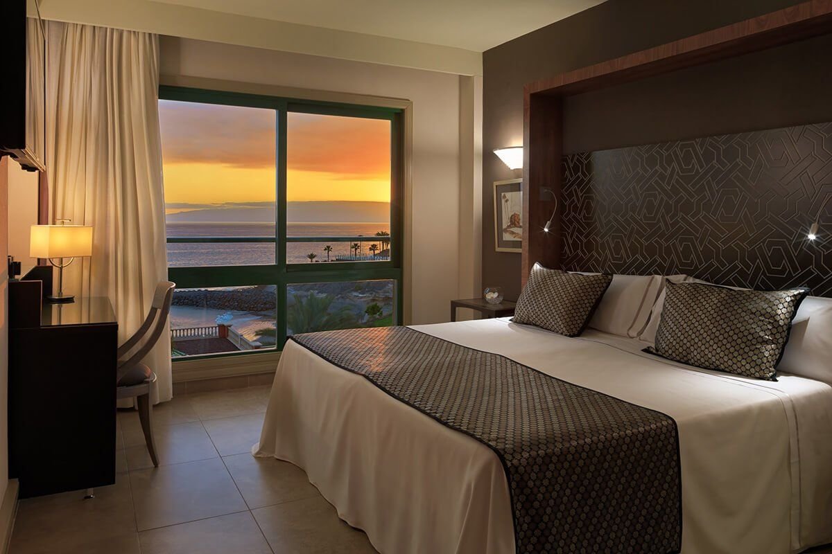 Hotel leží přímo u pláže Faňabé (přes promenádu) s tmavým pískem a výhledem na přístav Puerto Colón a ostrov La Gomera.