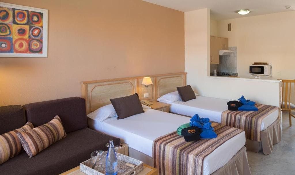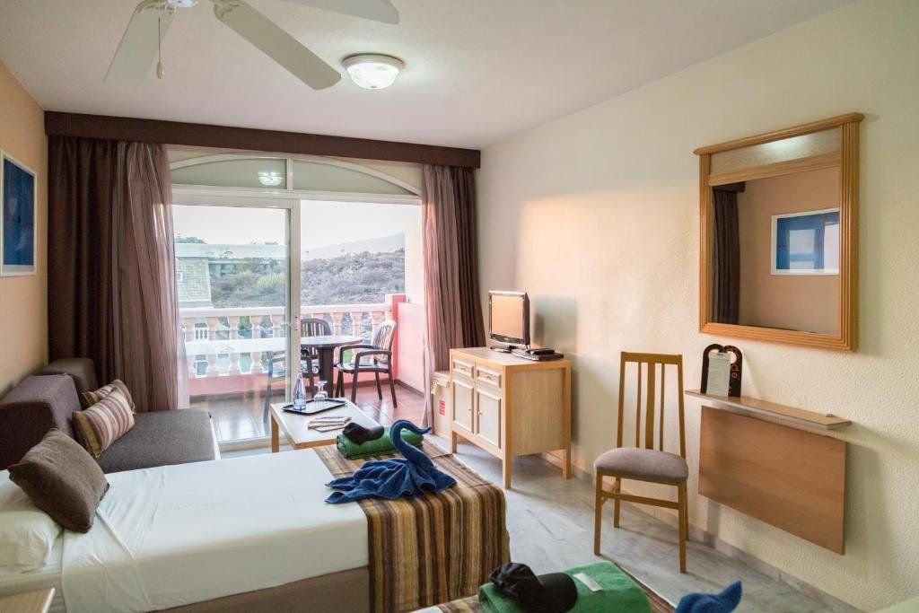 Pláž Las Vistas se nachází přibližně 600 m od hotelu a je jednou z největších pláží v oblasti, ideální pro vodní sporty a relaxaci. Playa de las Américas je také blízko, jen asi 1 km.