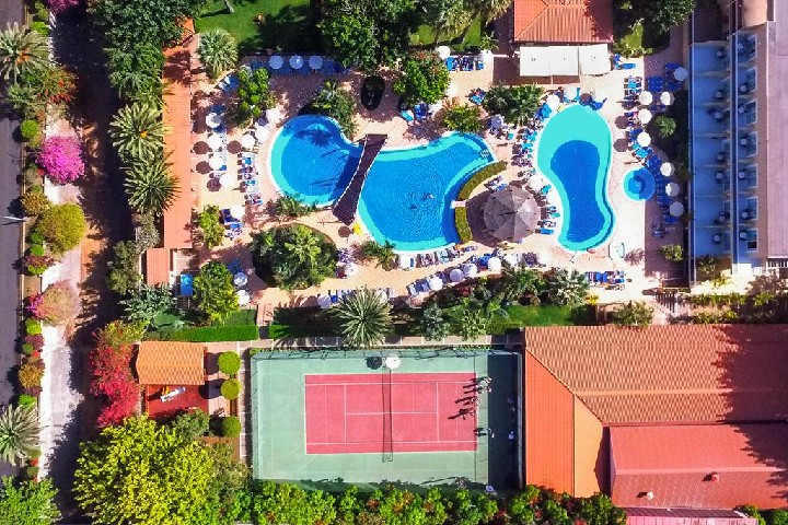 Standardní pokoje s individuálně nastavitelnou klimatizací jsou vybaveny koupelnou (vana/sprcha, WC, fén, kosmetický balíček), Wifi zdarma, TV/SAT, telefonem, za poplatek: minibar, trezor; s balkonem nebo terasou s výhledem do okolí. Za příplatek pokoje s výhledem na hory nebo moře.Za příplatek pokoje Junior Suite s možností až dvou přistýlek (pohovka) až pro 4 osoby jsou vybaveny stejně jako standardní pokoje, navíc nabídnou větší prostory, cca 40 m², opticky oddělenou ložnici od obývacího pokoje (bez dveří); s výhledem do okolí. Dětská postýlka pro děti do 2 let na vyžádání a zdarma. Nelze nad kapacitu pokoje.Stravování