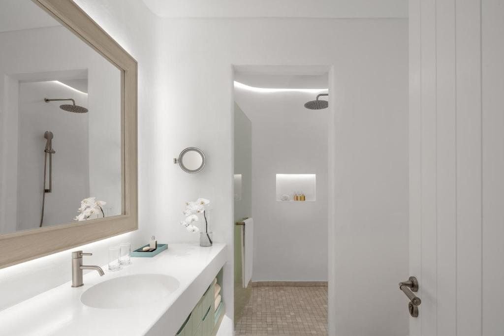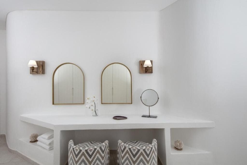 Pokoj Fira - dvoulůžkový pokoj o velikosti cca 42 m², je vybaven postelí o velikosti king, TV, pohovkou, rychlovarnou konvicí, přislušenstvím na přípravu čaje a kávy, videopřehrávačem, dokovací stanicí pro iPod, šatnou a terasou. Všechny pokoje s výhledem na moře.Pokoj Perissa - stejné vybavené jako pokoj Fira, ale větší (cca 50 m²). Pokoje s výhledem na moře a balkonem/ terasou.