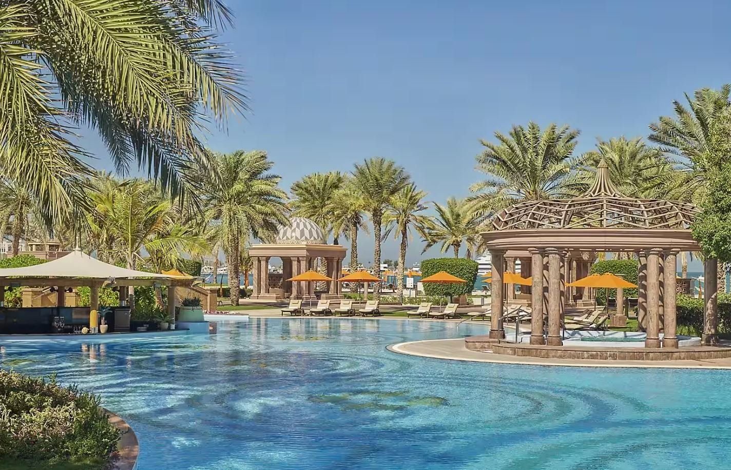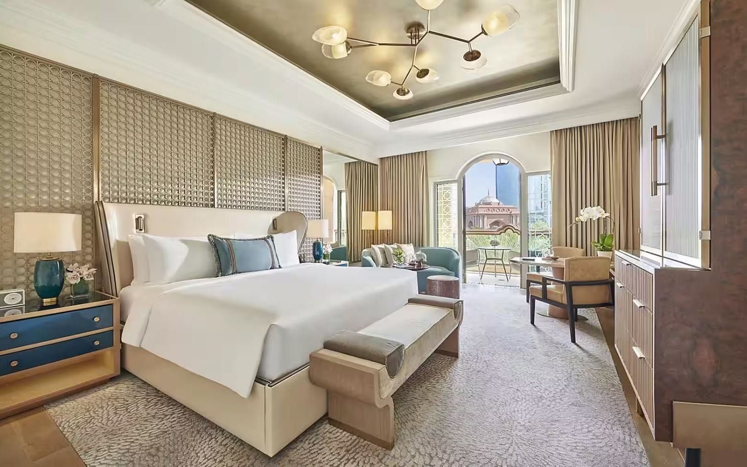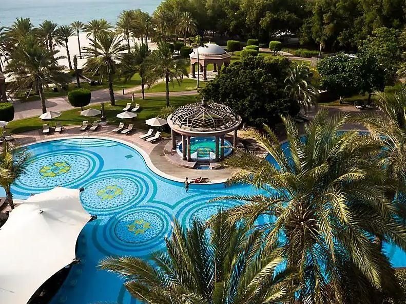 Hotel Emirates Palace, Mandarin Oriental Abu Dhabi se nachází v pohodlné vzádlenosti od Abu Dhabi corniche, vládních budov i nákupních možností (nejbližší nákupní galerie Marina Mall cca 5 minut jízdy taxi). Zároveň svým hostům díky velikosti areálu nabízí klid. Cca 40 km od letiště AUH v Abu Dhabi, cca 160 km od letiště DXB v Dubaji a cca 125 km od letiště DWC.