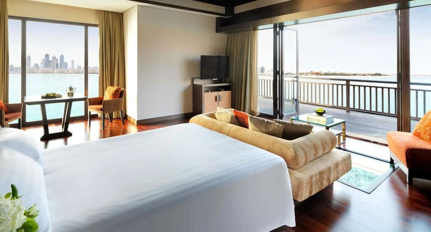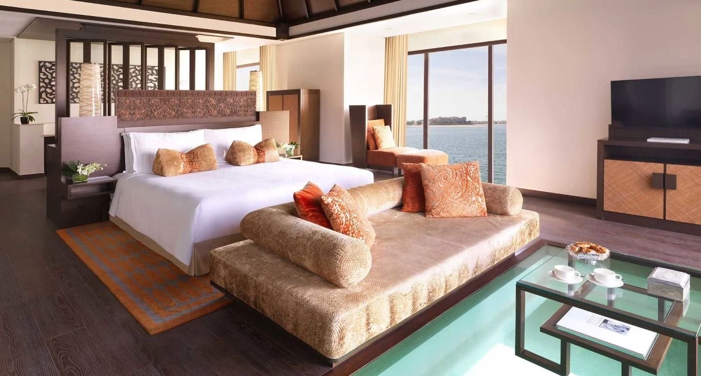 Hotel kombinuje několik typů ubytování. Celkem nabízí 293 pokojů a vil různých typů. Na výběr jsou jak klasické pokoje v hotelové budově, tak i pokoje ve vilách s přímým vstupem do společného lagunového bazénu. Anantara Dubai The Palm Resort & Spa je navíc první hotel v regionu, který má v nabídce rovněž vily nad vodní hladinou. Dvoulůžkový pokoj standard - Plocha cca 38 m², vybaven jednou dvoulůžkovou postelí nebo dvěma jednolůžkovými postelemi, TV, setem na přípravu kávy / čaje, trezorem, minibarem (za poplatek), balkon. Vlastní příslušenství (sprchový kout, WC, vysoušeč vlasů). Výhled na lagunu, panorama města nebo moře.Premium Pokoj (Přístup do laguny) - Plocha cca 47 m², vybaven jednou dvoulůžkovou postelí nebo dvěma jednolůžkovými postelemi, TV, setem na přípravu čaje, kávovarem Nespresso, trezorem, minibarem (za poplatek). Vlastní příslušenství (sprchový kout, vana, WC, vysoušeč vlasů). Terasa s lehátky a přímým vstupem do bazénové laguny.Deluxe Pokoj (Přístup do laguny) – Stejné vybavení jako Premium Pokoj, ale prostornější (cca 52 m²).Vodní vila - Plocha cca 106 m², umístění nad vodou. Vnitřní vybavení vil stejné jako u Premium / Deluxe pokojů.Plážová vila - Plocha cca 85 m², umístění u pláže. Vnitřní vybavení vil stejné jako u Premium / Deluxe pokojů. Navíc vlastní bazén.Přistýlky formou rozkládací pohovky.V případě zájmu je možné na vyžádání zajistit ubytování v partnerském resortu Anantara World Islands.