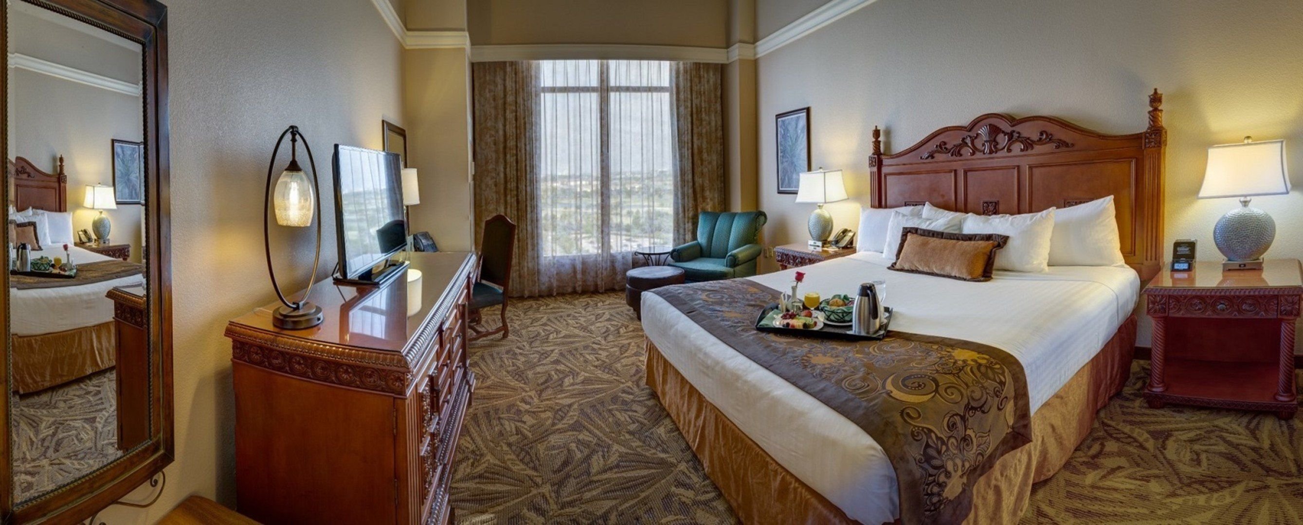 Pokoje jsou vybavené varnou konvicí, WiFi připojením (zdarma), trezorem (zdarma), TV s plochou obrazovkou, telefonem, individuálně regulovatelnou klimatizací, minilednicí a vlastním příslušenstvím (WC, sprchový kout, vysoušeč vlasů). 1 dvoulůžková postel velikosti king nebo 2 dvoulůžkové postele velikosti queen.