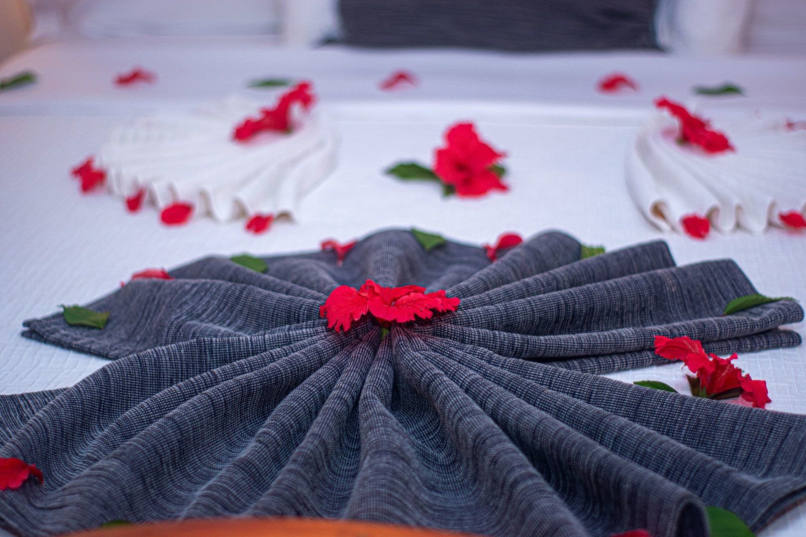 Dvoulůžkové pokoje s výhledem do zahrady a s vlastním příslušenstvím (koupelna, WC, fén), klimatizací, minichladničkou, telefonem, TV, trezorem (za poplatek). Za příplatek jsou k dispozici pokoje superior. Pokoje mají terasu nebo balkon.