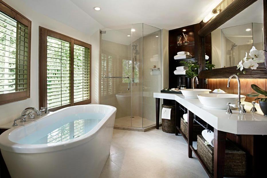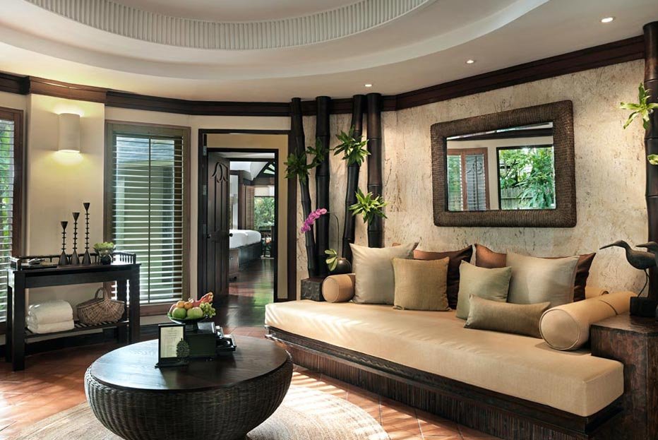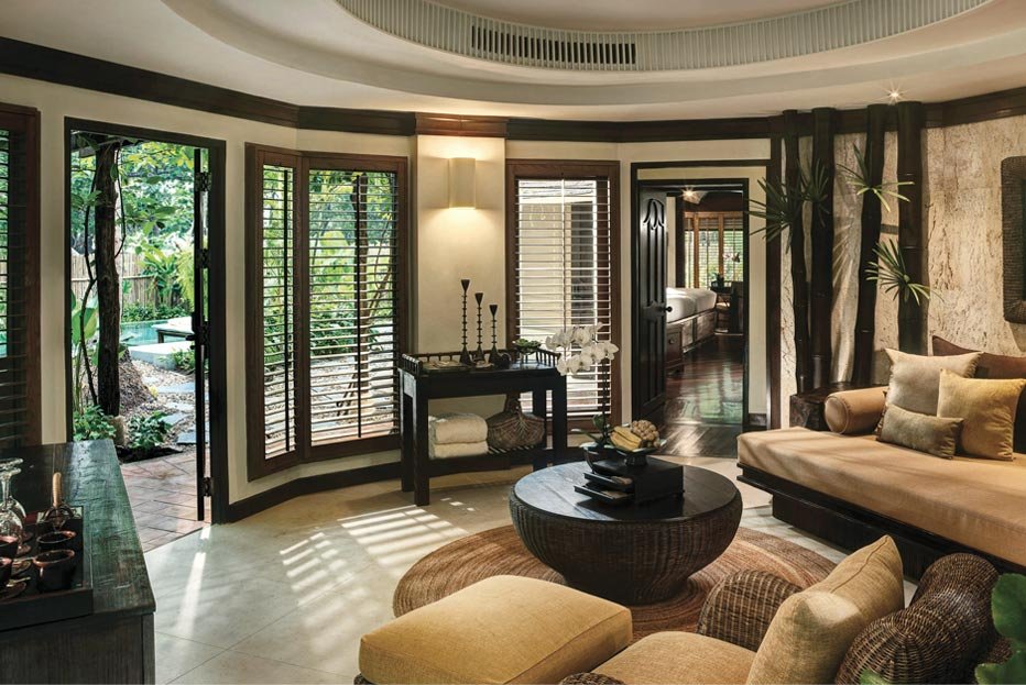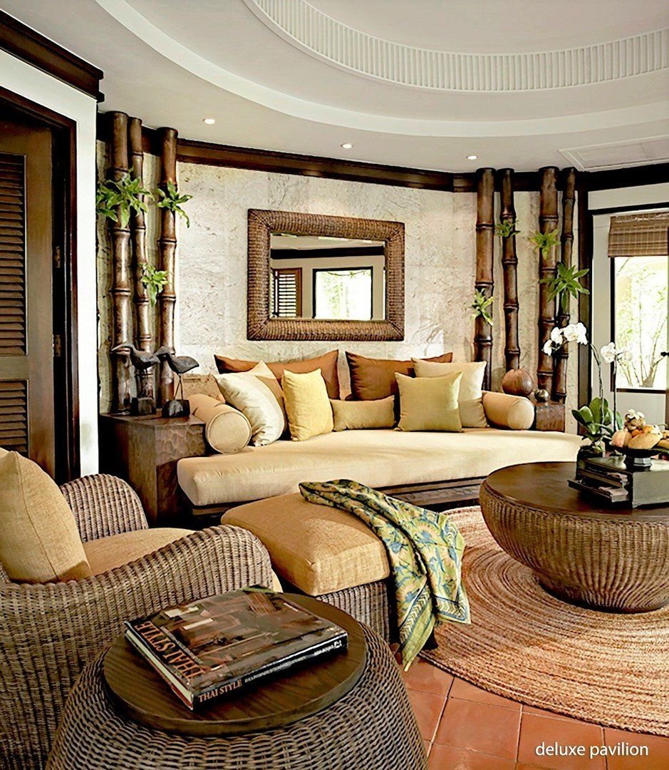 Dvoulůžkové pokoje Deluxe Pavilion (cca 90 m², dvoupatrové, stylový design) jsou plně vybavené a mají vlastní příslušenství (WC, koupelna, fén), SAT/TV, DVD, bezdrátový internet, příslušenství pro přípravu čaje a kávy a venkovní terasu. Za příplatek jsou k dispozici:- dvoulůžkové pokoje Terrace Pavilion (cca 115 m²) - stejné vybavení jako Deluxe Pavilion; otevřený obytný plán v přízemí, obývací část, prosklené dveře- dvoulůžkové pokoje Pool Pavilion (cca 115 m²) - soukromý bazén 3 x 8 m, ideální volba pro klienty vyžadující soukromí