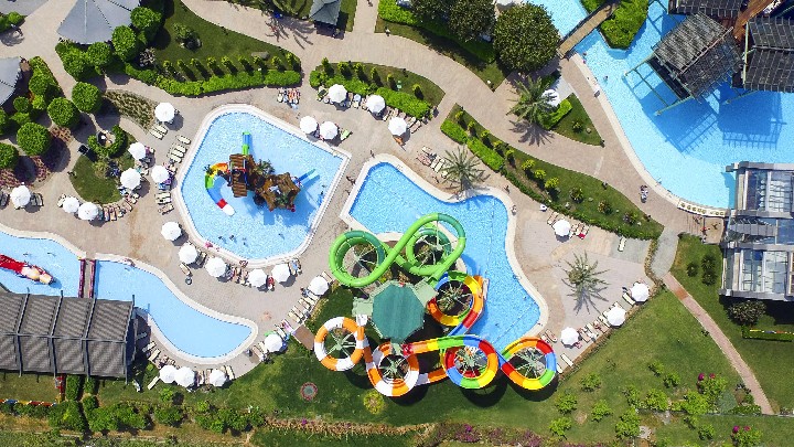 Vstupní hala, recepce, TV místnost, hlavní restaurace, 4 restaurace à la carte (nejsou součástí All inclusive), snack bar, 5 barů, kavárna, čajovna, WiFi zdarma, obchody, konferenční místnosti; za poplatek internetová kavárna, 3 bazény, aquapark, krytý bazén, 2 dětské bazény; lehátka a slunečníky zdarma.