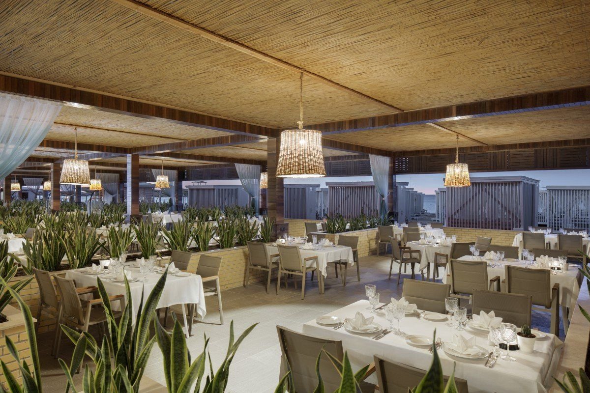 Hotel se skládá z jedné hlavní budovy, kongresového centra a sportovního complexu. Prostorná a nadčasová vstupní hala, recepce (24 hod.), několik výtahů, obchody s luxusními značkami, hlavní restaurace, dětská restaurace, 9 kvalitních a la carte restaurací (nutná předchozí rezervace), 6 barů, včetně plážového baru, baru na mole, cukrárny, čokoládovny, vinárny, irského pubu, Excel bar (24/7). Aquapark - 15 skluzavek, venkovní bazén, vnitřní bazén, děstký bazén, Relax bazén (v zimním období vyhřívaný). Lehátka, osušky i slunečníky zdarma. Za poplatek pokojová služba, služby lékaře, hlídání dětí, fotograf, kadeřník, půjčovna kol a aut. Akceptované kreditní karty Visa, Master Card.Ubytování