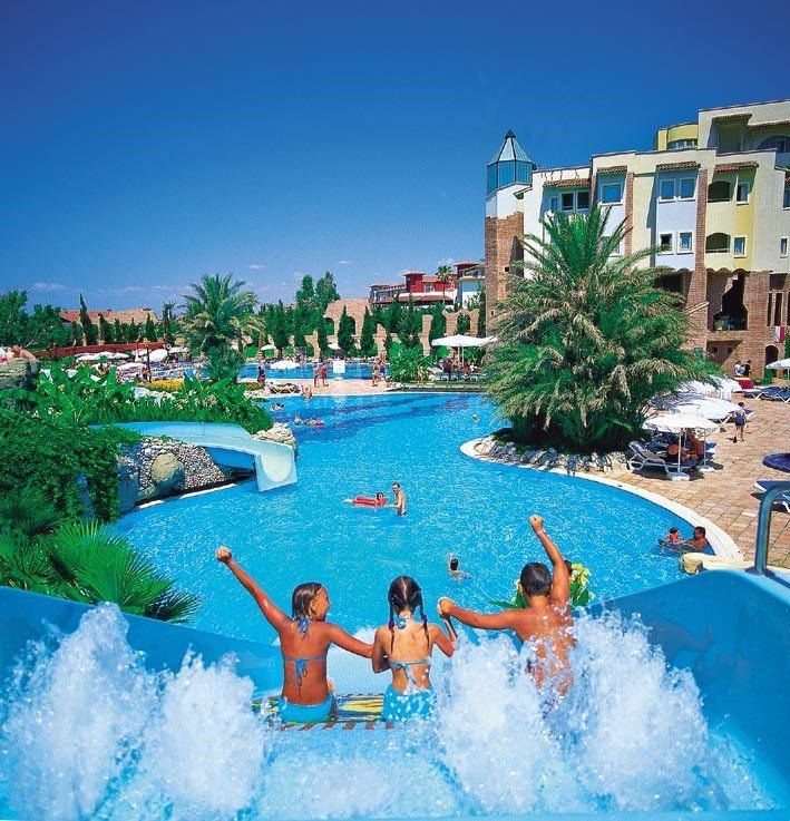 Vstupní hala, recepce (24 hod), hlavní restaurace, 4 restaurace s obsluhou (některé za poplatek), několik barů, cukrárna, TV místnost, konferenční místnost, nákupní zóna, WiFi zdarma, 3 bazény, dětský bazén, skluzavky, krytý bazén; lehátka, slunečníky a osušky zdarma.