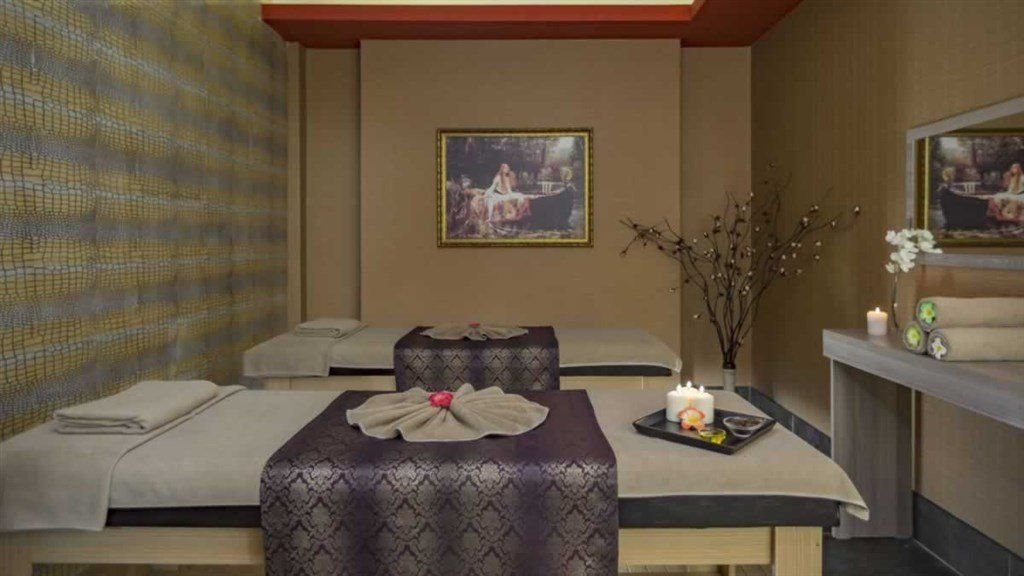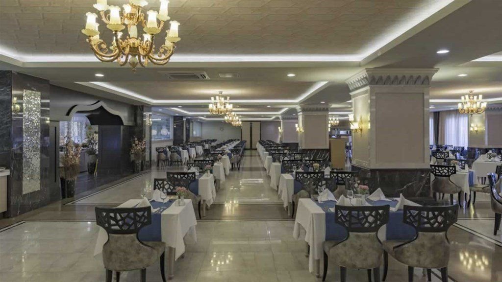 Vstupní hala, recepce (24h.), výtahy, hlavní restaurace, restaurace à la carte (nejsou součástí All inclusive), 7 barů (Lobby bar, bar u bazénu, Moonlight plážový bar, Amphi bar, Disco bar, Piano Lobby bar, Bowling bar), kavárna, konferenční místnost, WiFi v areálu hotelu zdarma, minimarket. Za poplatek internetová kavárna, lékař, půjčovna aut, hlídání dětí. Venkovní bazén, bazén se skluzavkami pro dospělé, bazén pro děti, vnitřní bazén. Lehátka, slunečníky a osušky zdarma.