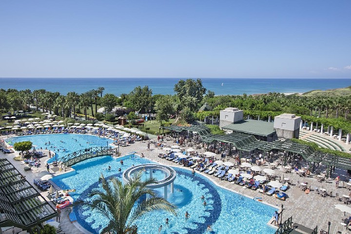 Vstupní hala, recepce (24 hod.), výtahy, 2 restaurace, 4 à la carte restaurace (anatolské, středozemní, italská, čínská), cukrárna, 6 barů, butiky, konferenční místnosti. 5 bazénů, aquapark, dětské brouzdaliště, miniaquapark se skluzavkami pro děti. Lehátka, slunečníky a osušky zdarma. Kadeřnictví, půjčovna aut.Ubytování