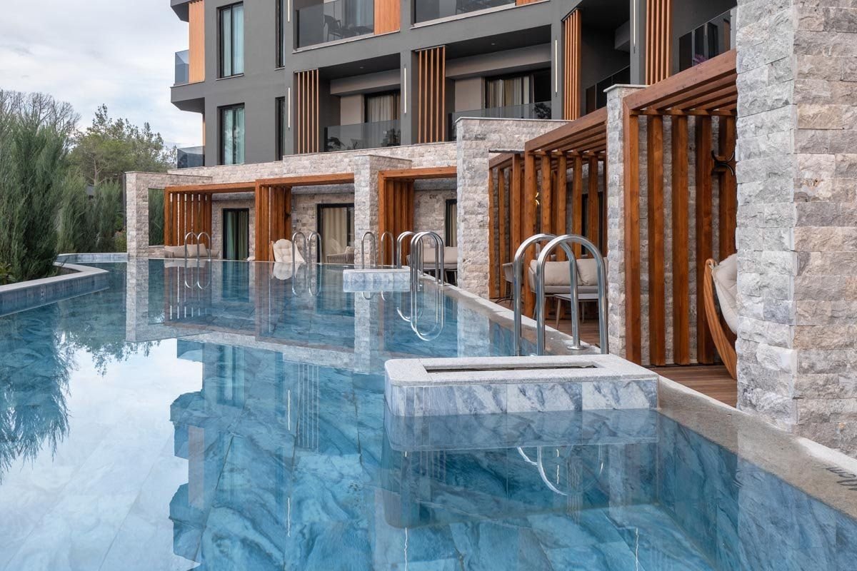 Přímo u pláže cca 10 km od centra Side či centra Manavgatu a přibližně 75 km od letiště v Antalyi.