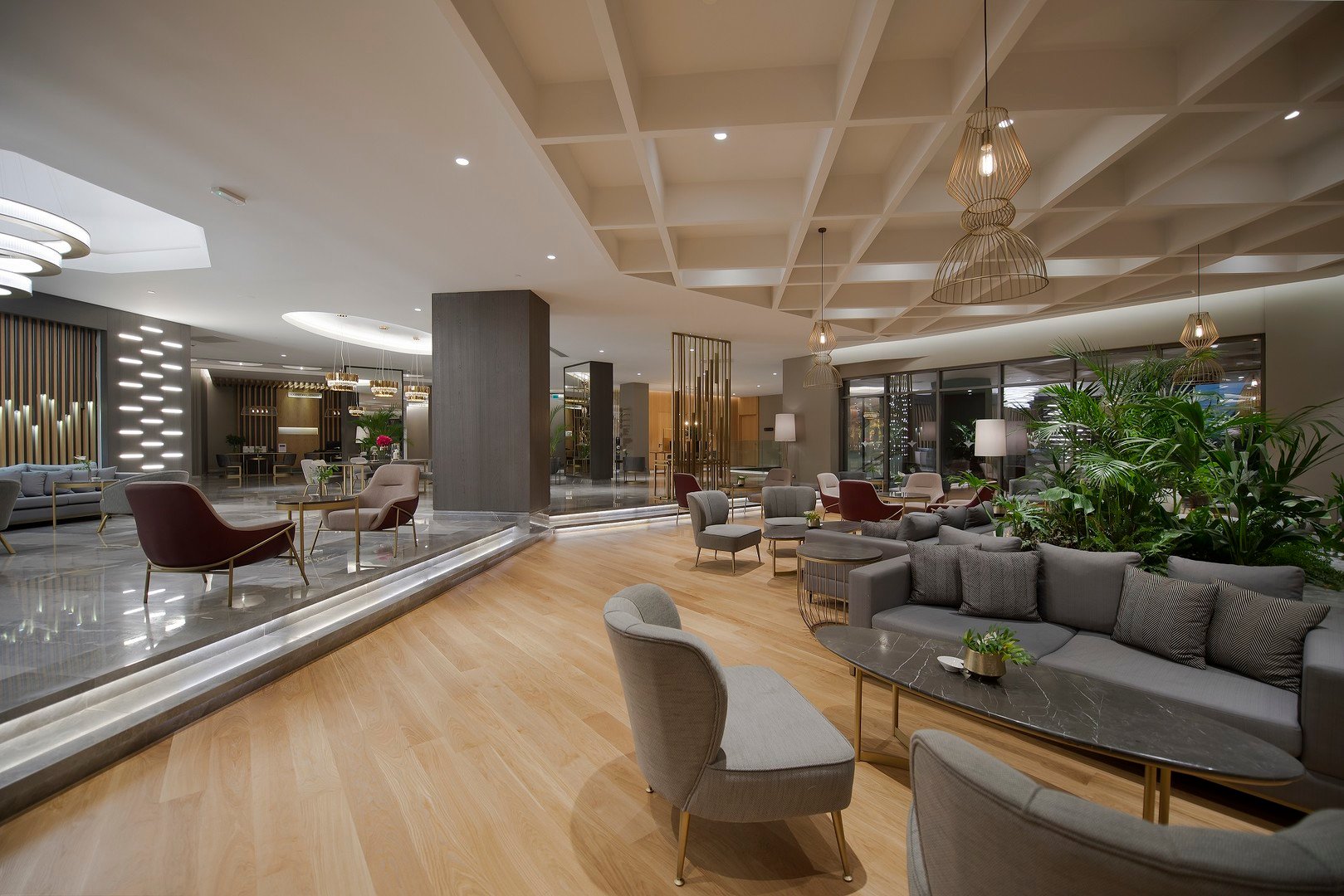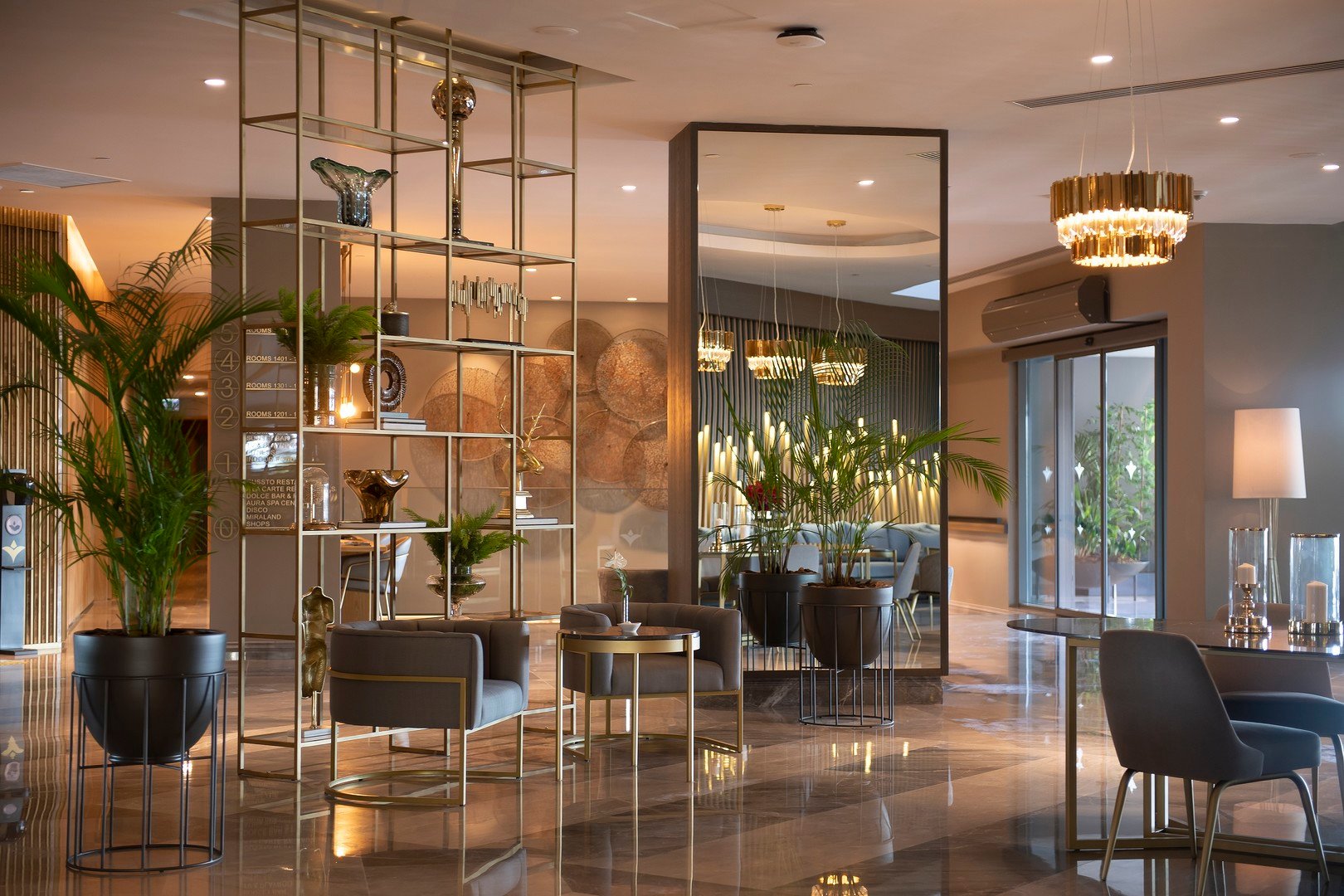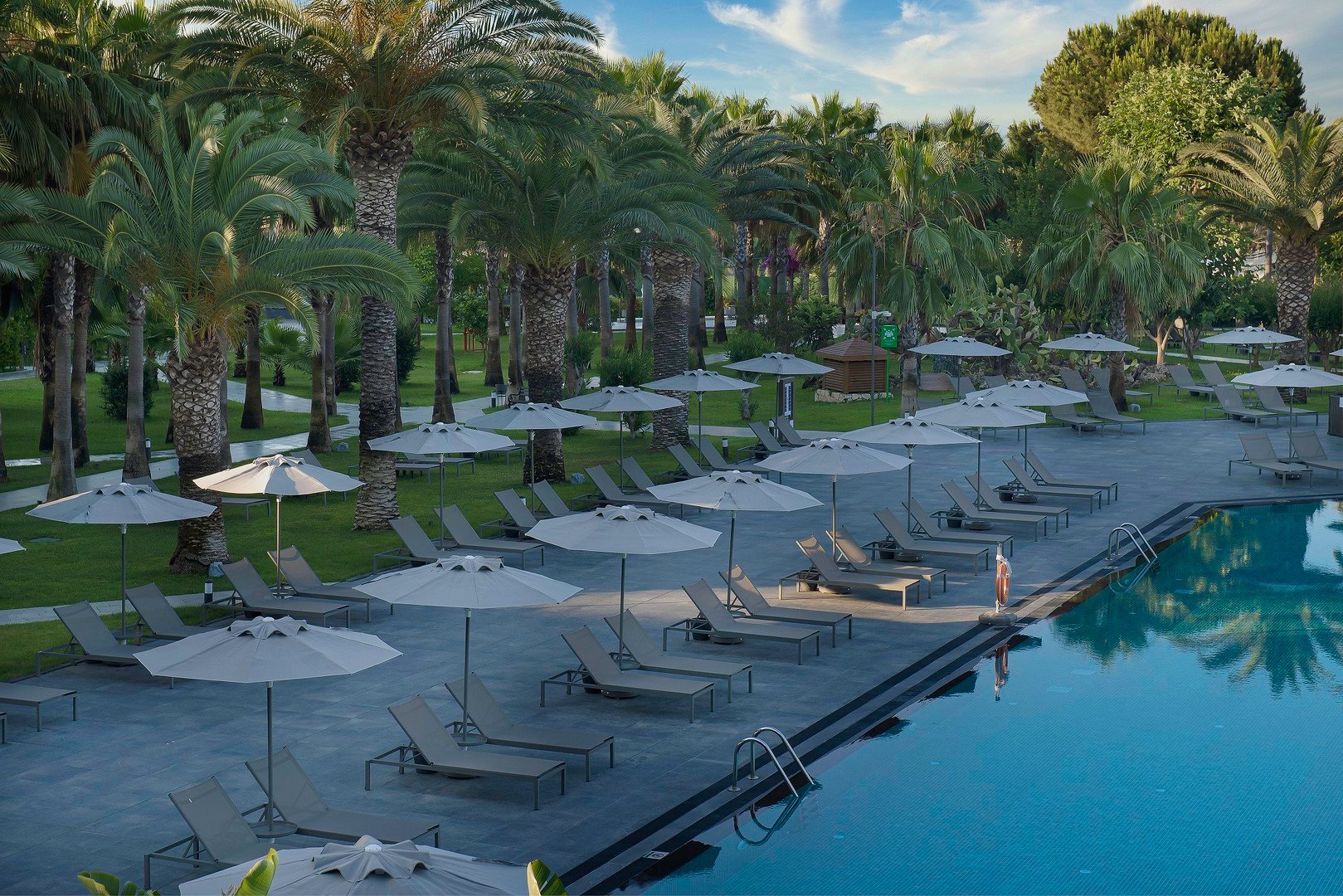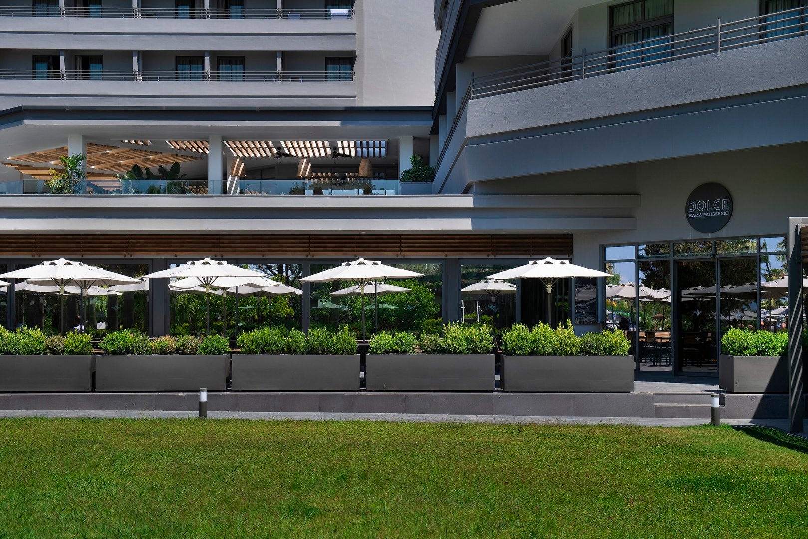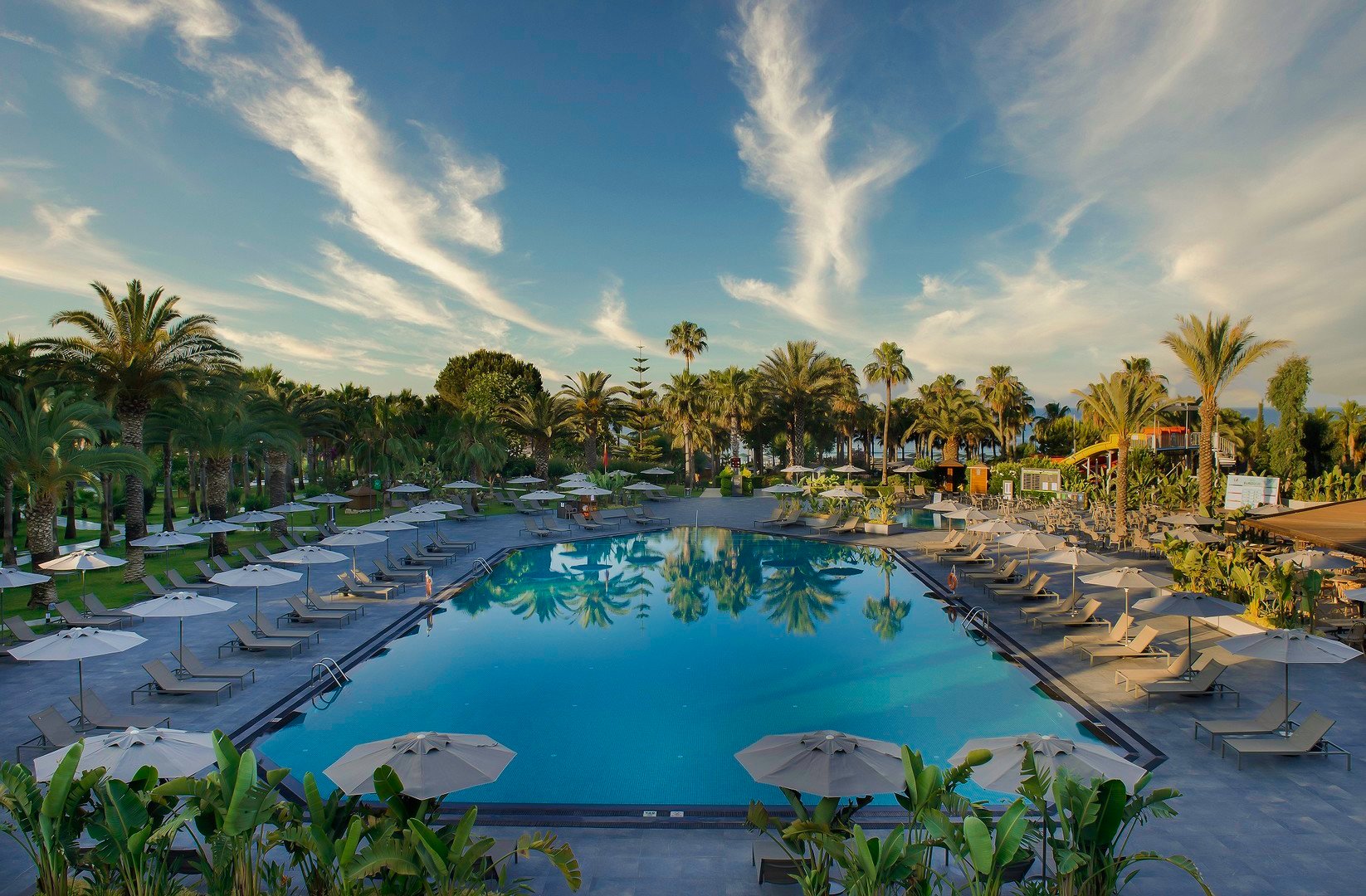 Hlavní budova 5 pater, 4 výtahy k dispozici, prostorná vstupní hala, recepce (24 hod.), hlavní restaurace, 2 restaurací à la carte - středomořská Olive, italská Sole Mare (1x za pobyt zdarma, nutná předchozí rezervace), 4 bary včetně plážového baru, sunset baru, dico baru, cukrárna otevřena 24 hod. denně, kavárna, minimarket, butik, konferenční centrum, WiFi zdarma, 2 bazény, dětský bazén, vnitřní bazén, skluzavky pro děti. Lehátka, slunečníky a osušky zdarma. Za poplatek kadeřnictví, SPA centrum, fotograf, hlídání dětí, půjčovna aut, lékař, prádelna. Akceptované karty Visa, MasterCard.