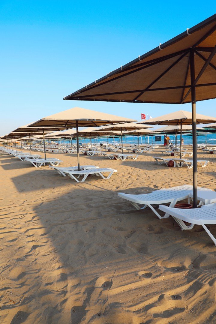 Hotelová písčitá pláž dlouhá 150 m přímo u hotelu, bar na pláži v rámci Ultra all inclusive. Lehátka, slunečníky a osušky zdarma.