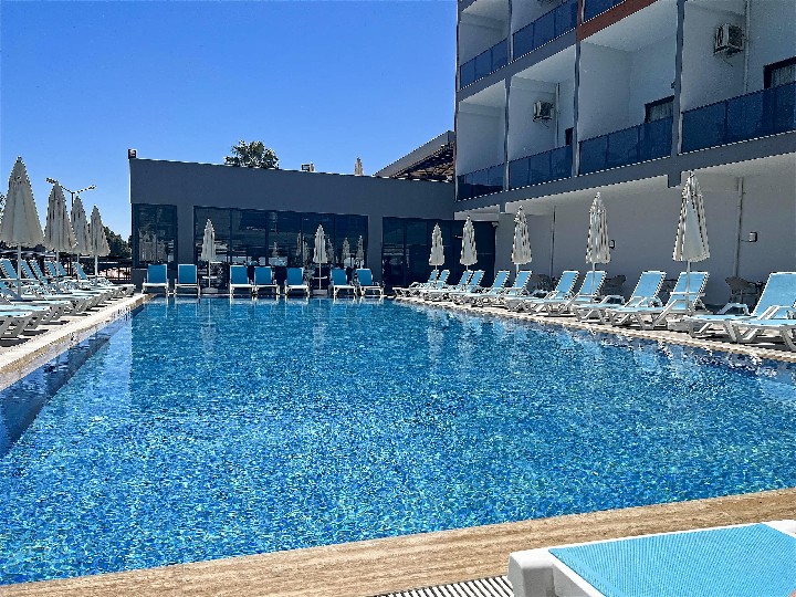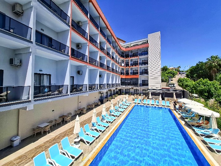 Hotel pouze pro dospělé (16+) prošel celkovou rekonstrukcí v roce 2022, má celkem 8 pater a 2 výtahy. Dále hotel disponuje vkusnou vstupní halou s recepcí (24h), hlavní restaurací, 3 bary, bar u bazénu, lobby bar, bar na pláži (za poplatek), půjčovna aut. Venkovní bazén, lehátka, slunečníky a osušky zdarma. (WiFi za poplatek 2 Eura/týden).